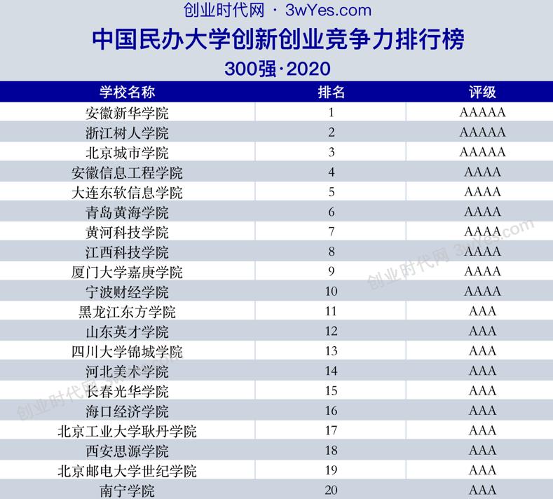 本网讯(通讯员:翟漱文)2021年9月,中国民办大学创新创业竞争力排行榜300强·2020榜单由创业时代网正式发布,beat365网登在全国三百强中综合排名第一,创历史新高!