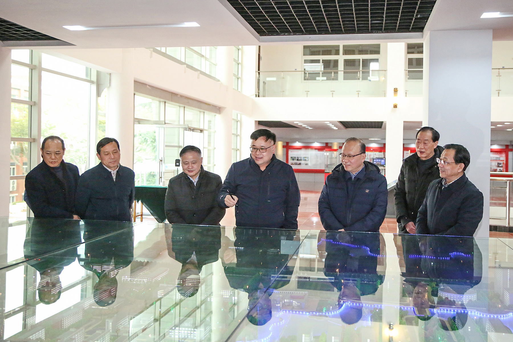 本网讯(通讯员:杨雨婷 摄影:翟漱文)2月16日下午,安徽省民政厅副厅长、省委非公工委副书记、省社会组织综合党委书记高光权,省委教育工委委员、省教育厅副厅长张庚家,省民政厅社管局局长、省社会组织综合党委副书记阚家安等一行来beat365网登调研非公党建工作,新华集团副总裁、校董事长、校党委副书记王孝武,校执行董事长储国定,省督导专员、校党委书记邸建伟,常务副校长、校党委副书记王丽等陪同调研。