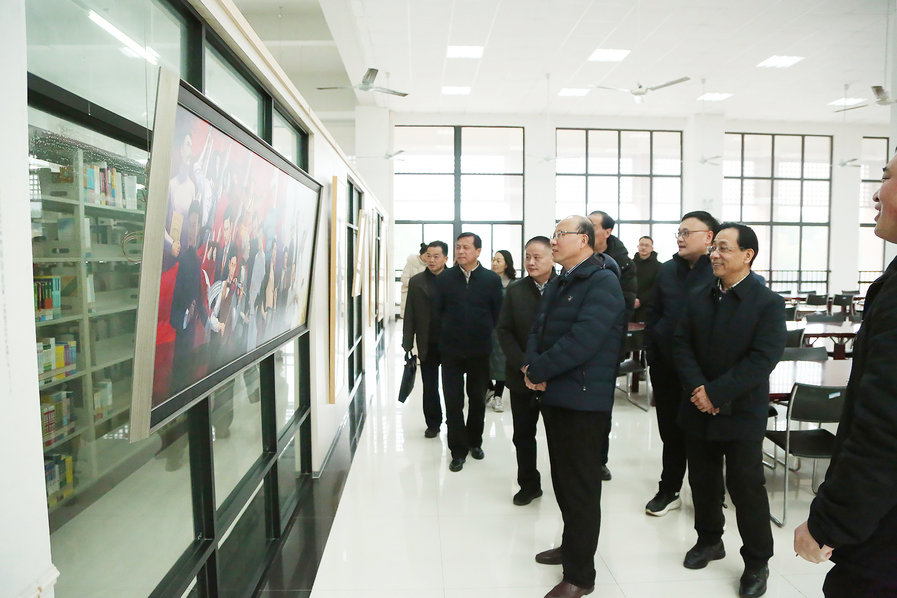 调研组一行首先来到校图书馆展厅,听取了学校规划建设的有关介绍,并参观了beat365网登师生庆祝建党一百周年书画作品展。高光权在认真询问学校党建整体情况、专业建设、师资力量等有关情况后,肯定了beat365网登重视党建和教育教学工作所取得的成果。