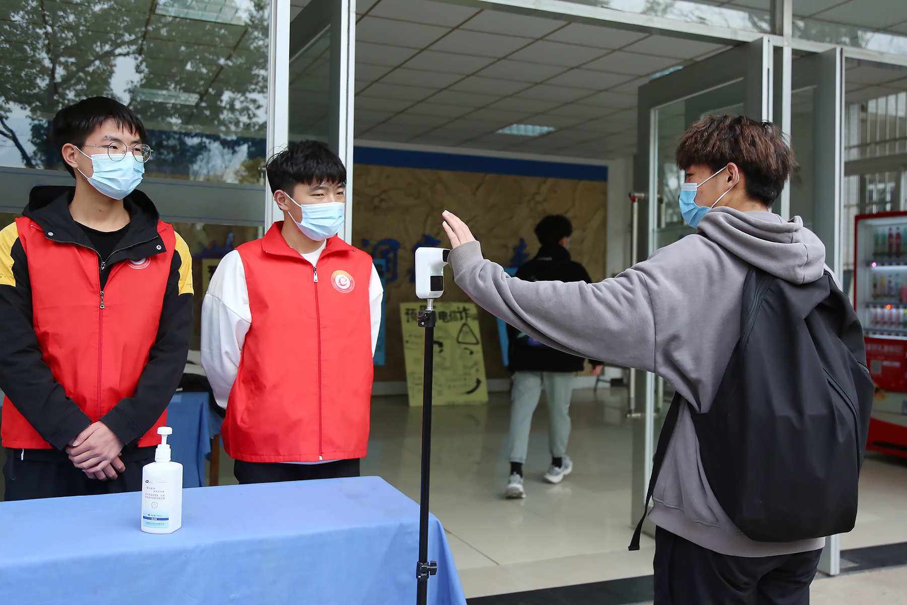 学校教育引导学生做好各项晨晚检、核酸抽检、疫苗接种等工作,出现发热、咽痛、咳嗽、胸闷等不适症状,学生第一时间报告所在班级辅导员,教职工要第一时间报告学校,并按照学校相关应急预案到指定医院就医或隔离观察。3月18日,学校开展了春季开学以来第二次全校全员核酸检测工作。