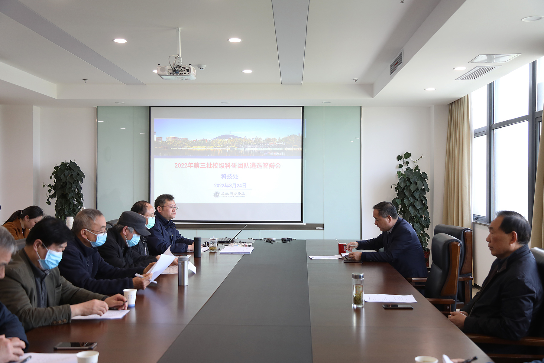 本网讯(通讯员:张帆)为进一步提升学校服务区域经济社会发展的能力,促进应用型高水平大学建设。2022年3月24日下午,beat365网登在科研办公楼508会议室召开第三轮校级科研团队遴选会。副校长杨世国、科技处副处长邱国新、评审专家、校级科研团队申报负责人等参加了此次会议,会议由邱国新主持。