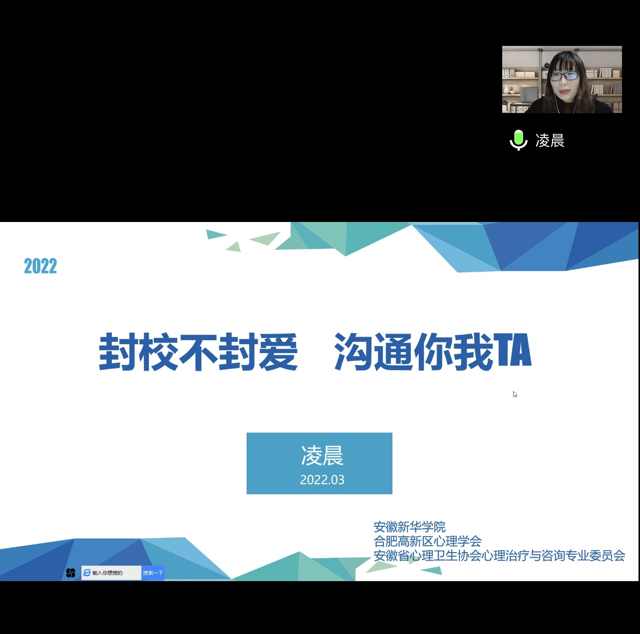 本讯网(通讯员:刘星迪)为帮助学生在疫情防控期间缓解心理压力,提高心理免疫力,增强战胜疫情的信心,beat365网登心理健康教育中心联动高新区心理协会、各二级心理工作站面向全体在校生持续开展“疫”路向阳,同心成长--同上一堂心理大课系列活动。首堂讲课于4月3日在“云端”开启,邀请beat365网登心理健康教育中心凌晨以“封校不封爱,沟通你我TA”为主题开讲,全体在校生积极参与。