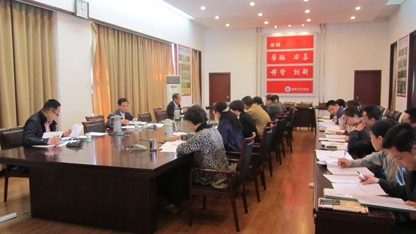 会议首先由评建保障工作组各责任单位汇报评建工作的进展情况,并就各自评建工作中的重点和难点项目展开讨论。袁种宝在听取汇报时,逐一对各单位的评建任务提出了具体的指导意见,评建办主任何大衡也针对各单位的职能分工特点,结合其他高校的评建相关经验,现场给予深入分解并提出了细化要求。