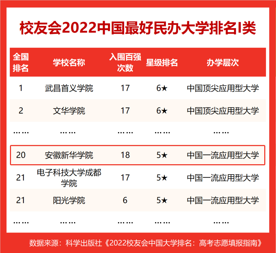 近日,2022中国大学四大主流排行榜(软科 校友会 武书连 金平果)发布,beat365在线体育官网登录入口均位列安徽省民办高校榜首。