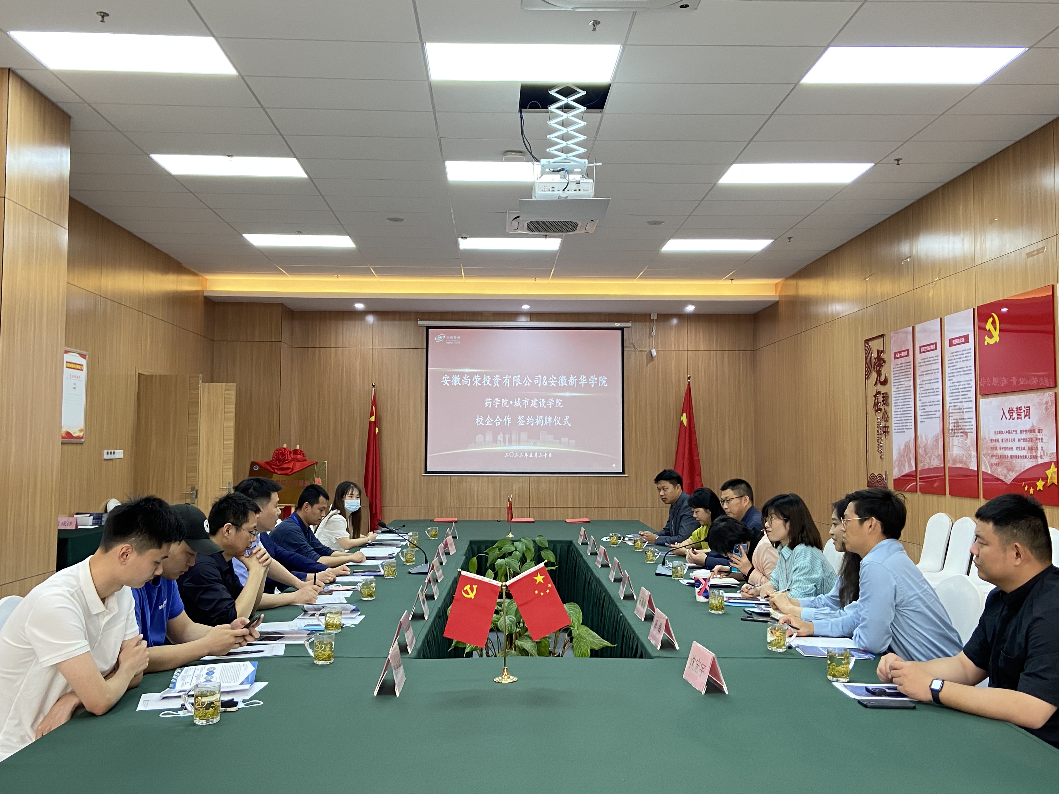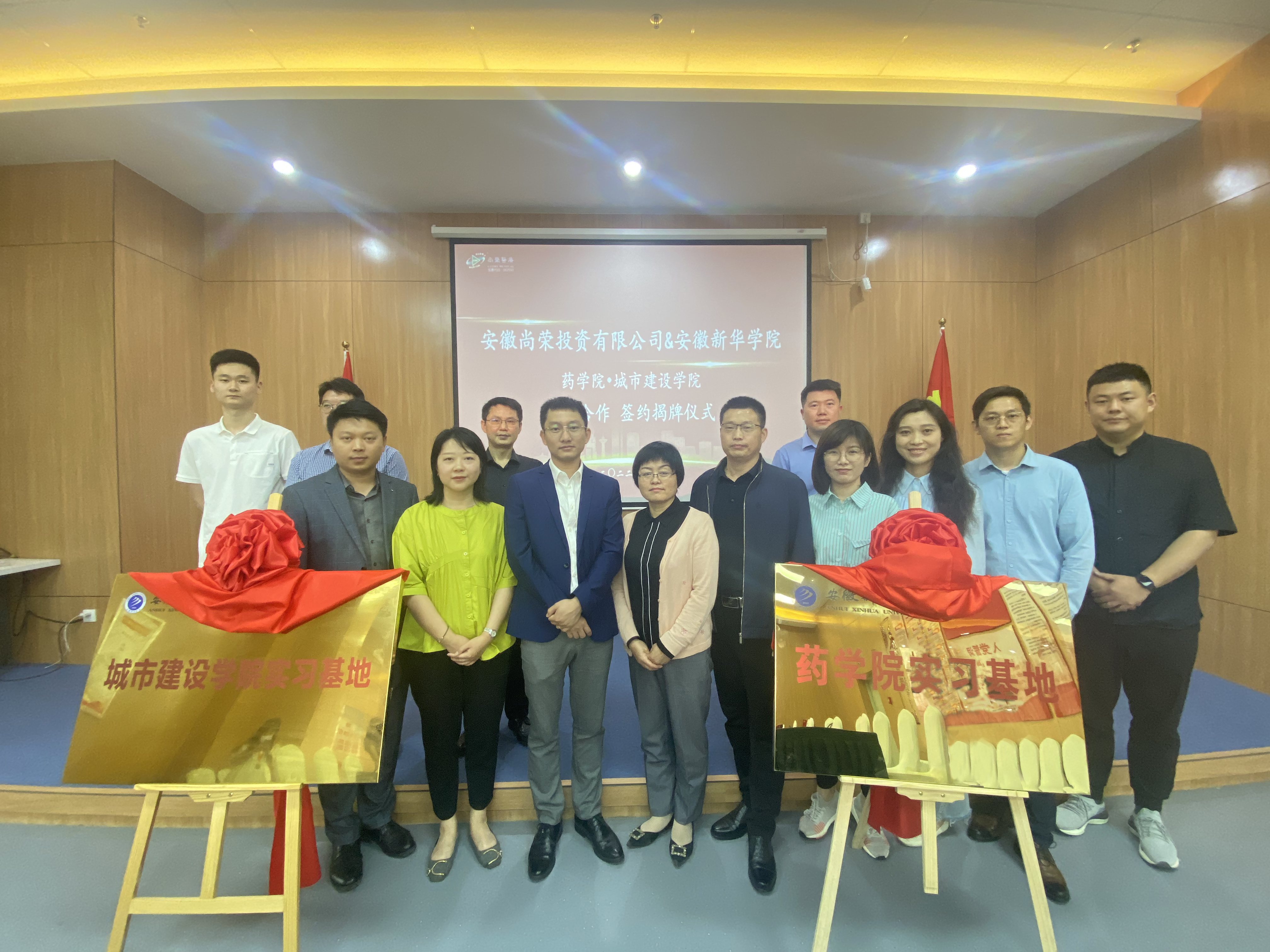 本网讯(通讯员:于墨涵)5月20日上午,学校药学院、城市建设学院与安徽尚荣投资有限公司“校企合作”签约暨揭牌仪式在安徽尚荣大健康产业园举行。城市建设学院、药学院与安徽尚荣投资有限公司现场签订合作协议。城市建设学院执行院长赵倩青、药学院执行院长黄德垚与安徽尚荣投资有限公司总经理许凯华为实习基地揭牌。