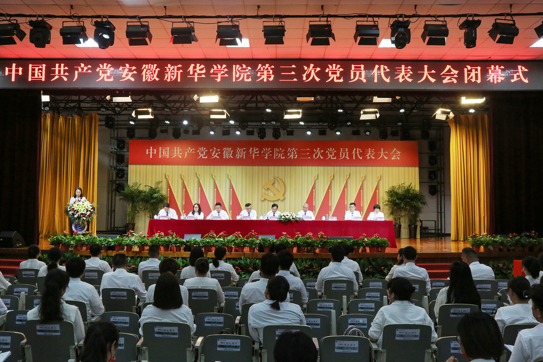王孝武同志为本次大会致闭幕词。他指出,这次大会,是在全校上下深入学习贯彻习近平总书记系列重要讲话精神和党的十九大和十九届历次全会精神,认真落实习近平总书记视察安徽重要讲话精神及中共安徽省第十一次代表大会精神,认真总结学校第二次党代会召开以来的工作,讨论确定学校今后五年党的建设任务,对学校发展的重大工作作出了战略部署。此次会议是十分重要的会议,是一次承前启后、继往开来的大会;是一次总结过去、谋划未来的大会;是一次团结奋进、凝才聚智的大会。从思想上政治上组织上为学校今后五年改革发展奠定了坚实基础、提供了坚强保证。