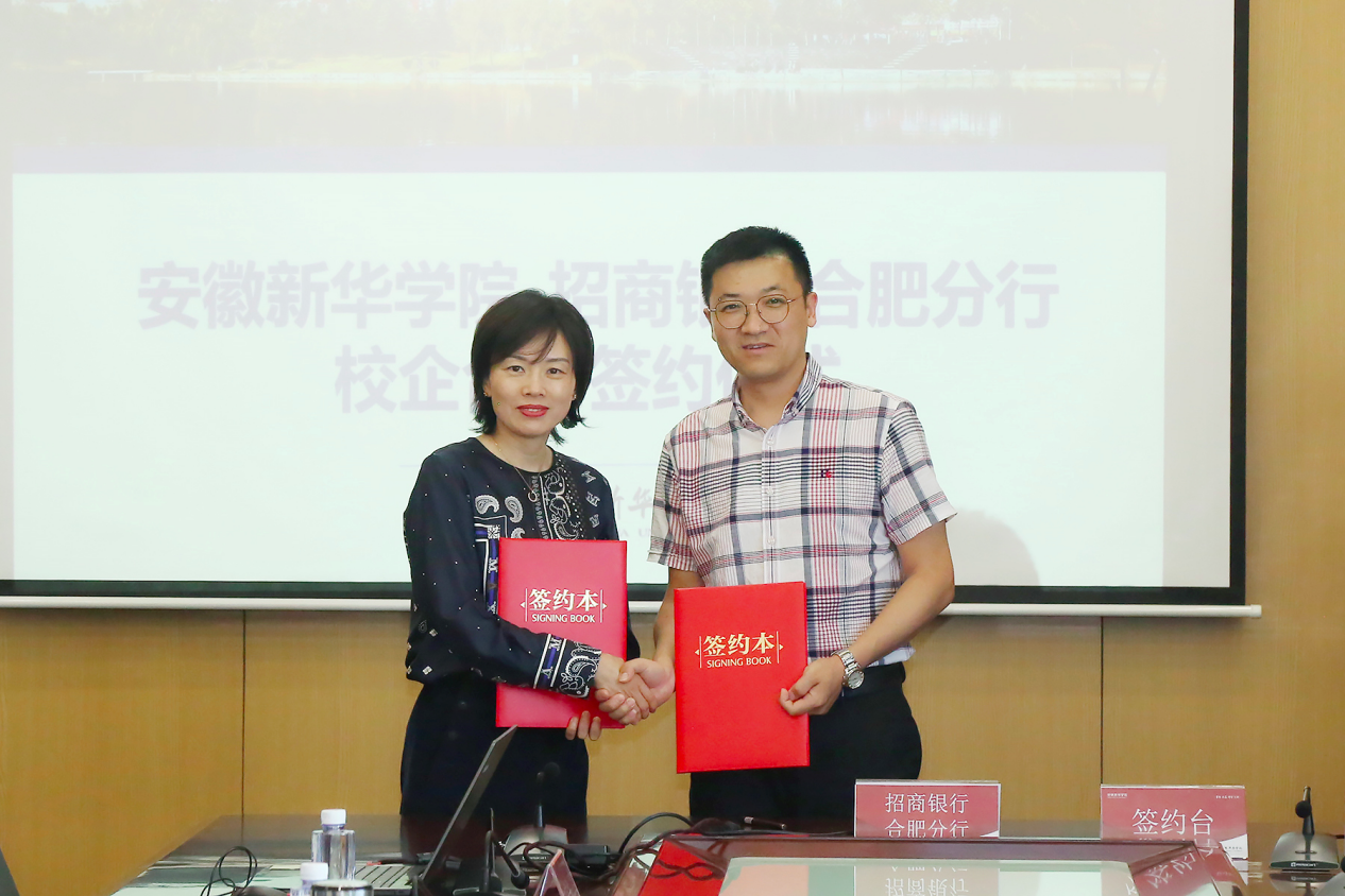 本网讯(通讯员:张璐、屈文静)为贯彻落实国家“以企业为主体、市场为导向、产学研相结合”的科技发展战略,充分发挥高校服务地方经济社会发展的功能,7月19日下午,beat365在线体育官网登录入口与招商银行合肥分行举行校企合作签约仪式。招商银行合肥分行党委委员、副行长李健、人力资源部负责人韩友诚、新经济战略客户团队总经理夏艺、零售银行部总经理俞洋、人力资源部总经理助理何贵波、新经济战略客户团队主管肖灵素等出席仪式。新华集团总裁张明、beat365在线体育官网登录入口执行董事长储国定、常务副校长王丽、校长助理王琦进,以及相关职能部门、二级学院负责人等参加了仪式。