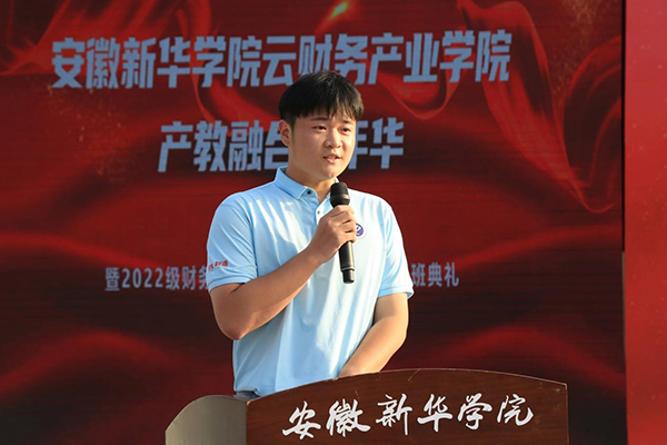 激情的音乐,动感的节奏。一支充满活力的《舞动青春》正式拉开了序幕。戴昕代表beat365在线体育官网登录入口对莅临参加活动的各位领导表示热烈的欢迎,对2022级全体新生表示诚挚的祝贺和热烈的欢迎。他指出,云财务产业学院财务管理(用友新道卓越班)是学校为应对“大智移云物区”等新技术的应用对传统财务领域带来巨大挑战的积极产物。经过三年实践,beat365网登财务管理专业已荣获“双万计划”国家级一流专业建设点、省级现代产业学院、省级示范实践教育基地、省级示范实验实训中心等系列成果。他希望财会与金融学院能够充分发挥校企双方优势,助力卓越班成长;新道科技也能够一如既往支持新道班班发展。最后他对新生提出了做好自我规划、管理好时间和广交益友的期望,希望同学们健康快乐幸福成长。