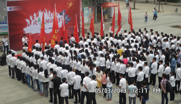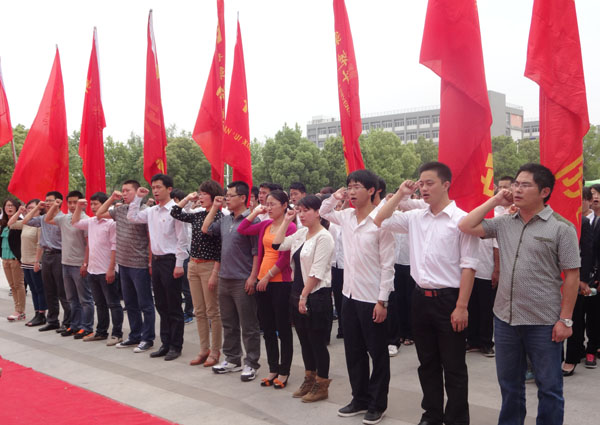 本网讯(通讯员 洪威)5月3日,正值五四青年节与“五四”运动94周年来临之际,校团委组织团员青年与学生干部代表300余人在翰林广场参加重温入团誓词主题教育活动。