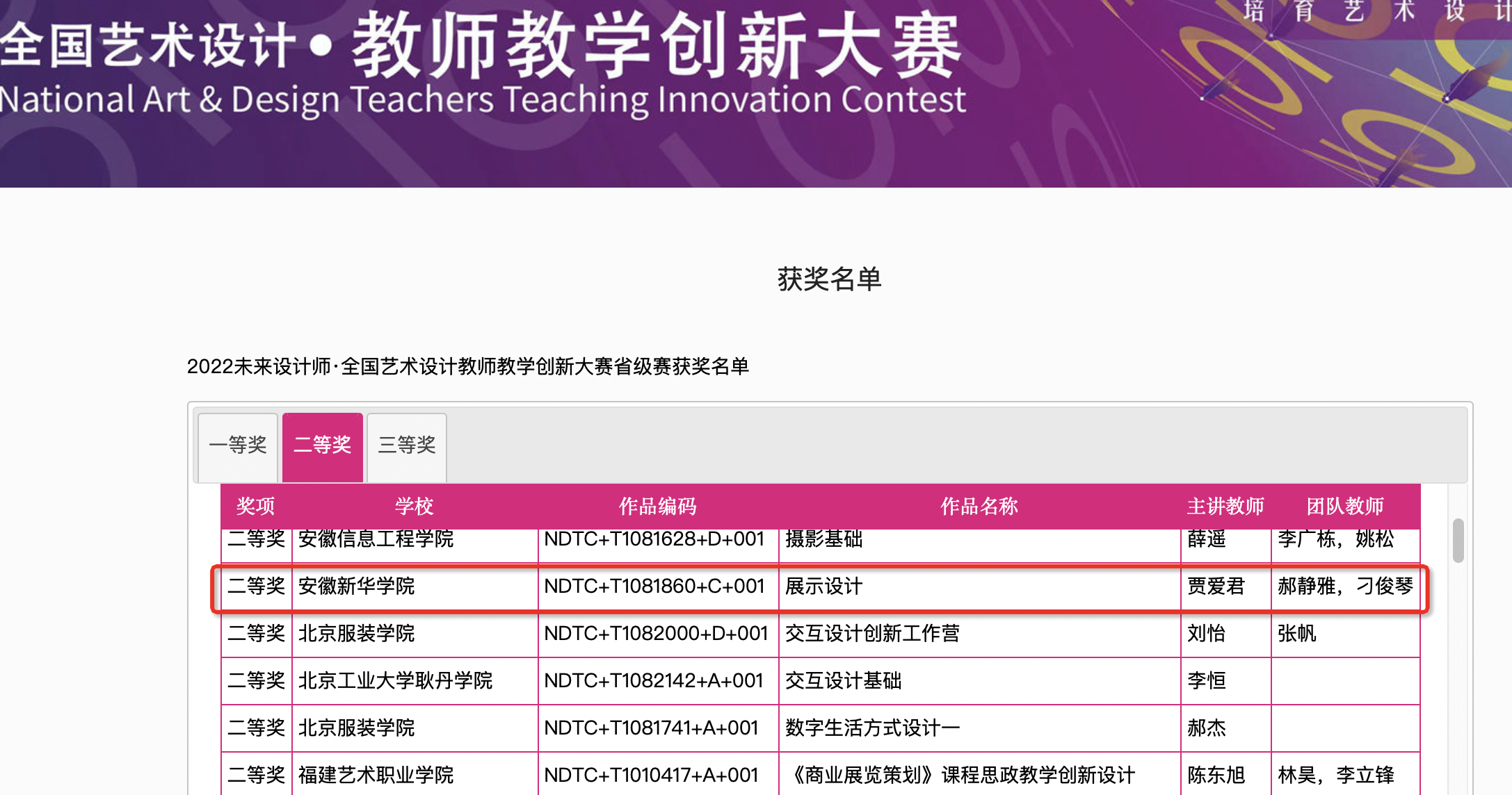 beat365网登教师在未来设计师•全国艺术设计教师教学创新大赛安徽赛区中喜获一、二等奖