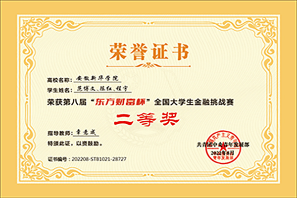 喜报!beat365网登学子荣获第八届“东方财富杯”全国大学生金融精英挑战赛全国二等奖