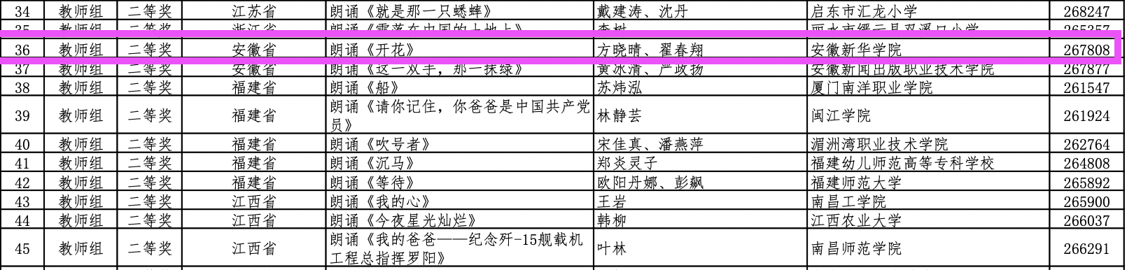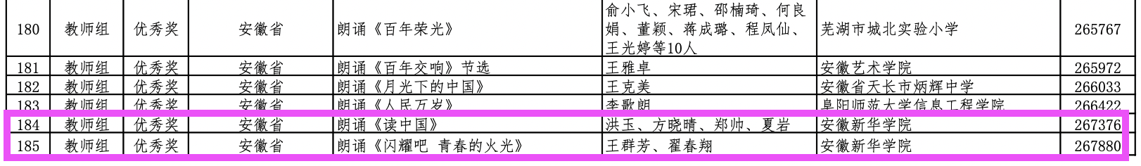 第四届中华经典诵写讲大赛“诵读中国”经典诵读大赛从4月启动以来,全国省级部门选拔推荐和专家评审,7个组别3754个视频作品入围全国复赛、1370个作品入围决赛,330个作品入围总决赛。beat365网登教师组的方晓晴、翟春翔初赛作品《开花》披荆斩棘,突出重围,最终代表安徽省入围总决赛。在全国总决赛中两位老师声情并茂地朗诵诗歌作品《一片槐树叶》,情绪传达到位,将诗人思乡盼归的情感表达得淋漓尽致,并荣获全国总决赛二等奖。另外两组《闪耀吧青春的火光》(王群芳 翟春翔)、《读中国》(洪玉 方晓晴 郑帅 夏岩)获得总决赛优秀奖。