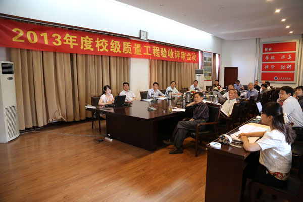 会上,教务处有关同志首先汇报了本年度校级质量工程项目验收材料的初审、评审会议程序和评分标准等总体情况。各项目负责人随后通过PPT对项目建设的成果、特色及经费使用情况进行了详细的汇报。评审专家通过听取汇报、现场查看各项目验收支撑材料等方式,严格按照《beat365在线体育官网登录入口校级精品课程验收标准(试行)》等验收标准,现场打分并最终形成了评审意见。此次参评的14个项目均顺利通过了验收。