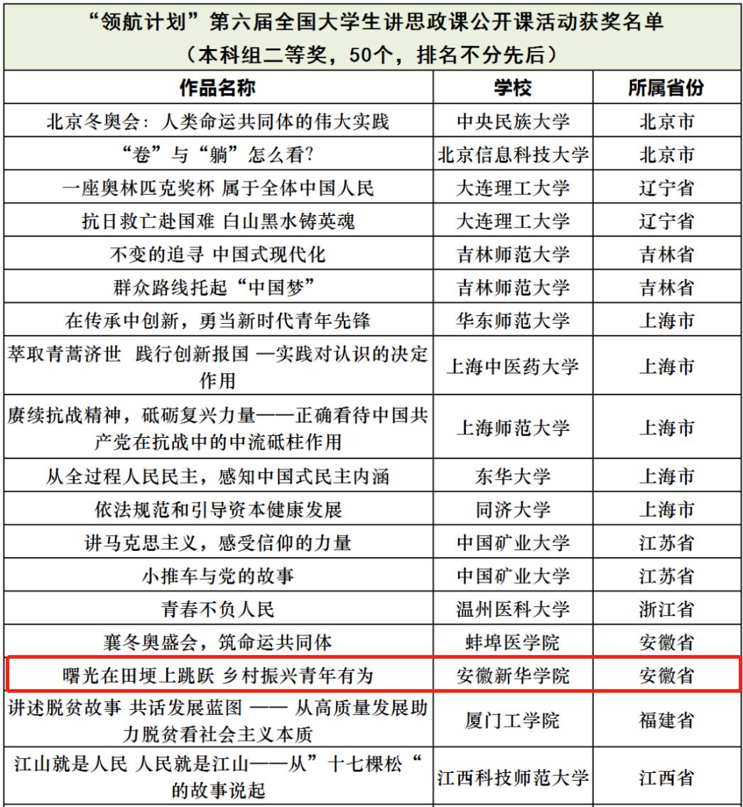 本网讯(通讯员:吴之娴)近日,由教育部高校思想政治理论课教学指导委员会主办、南开大学马克思主义学院承办的习近平新时代中国特色社会主义思想大学习领航计划主题教育“青春献礼党的二十大•强国有我新征程”——第六届全国高校大学生讲思政课公开课活动评选结果揭晓,beat365网登马克思主义学院董丽娟、刘丽娟两位教师指导的学生作品《曙光在田埂上跳跃——乡村振兴 青年有为》荣获本科组二等奖。这是beat365网登继第五届全国大学生讲思政课公开课活动获优秀奖之后再一次获奖,也刷新了学校参加本项赛事以来的最佳成绩。