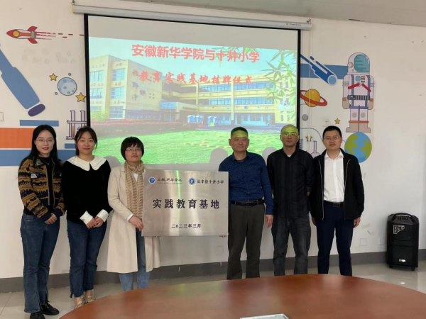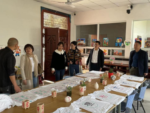 邵玲一行首先来到十井小学,杨庙中心学校校长徐庆卫、十井小学校长吴硕勇热情接待了邵玲一行。在两位校长的陪同下,邵玲参观了十井小学书画室、劳动教育基地等场所。学生书写的毛笔字帖、自己动手制作的以社会主义核心价值观为主题的文化衫、劳动教育基地学生制作的象棋、种植的蔬菜和校园的文化宣传氛围等体现了学校良好的素质教育成果。吴硕勇对beat365网登前期对十井小学的帮扶工作表示感谢,尤其对我院师生以二十四节气为主题创作的绘画文化墙表示了肯定。随后双方围绕义务支教、志愿服务、心理辅导、劳动教育等交流合作内容进行了洽谈。最后邵玲和徐庆卫为“beat365在线体育官网登录入口—十井小学实践教育基地”揭牌,并进行合影留念。