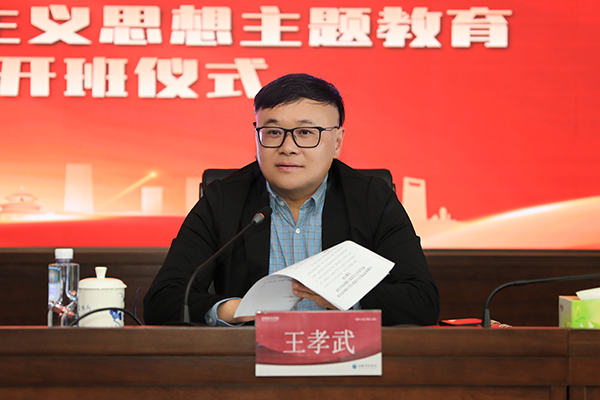 会议第一阶段,王孝武宣读《beat365在线体育官网登录入口学习贯彻习近平新时代中国特色社会主义思想主题教育读书班实施方案》(以下简称《方案》)。接着邸建伟作动员讲话。会议由王丽主持。