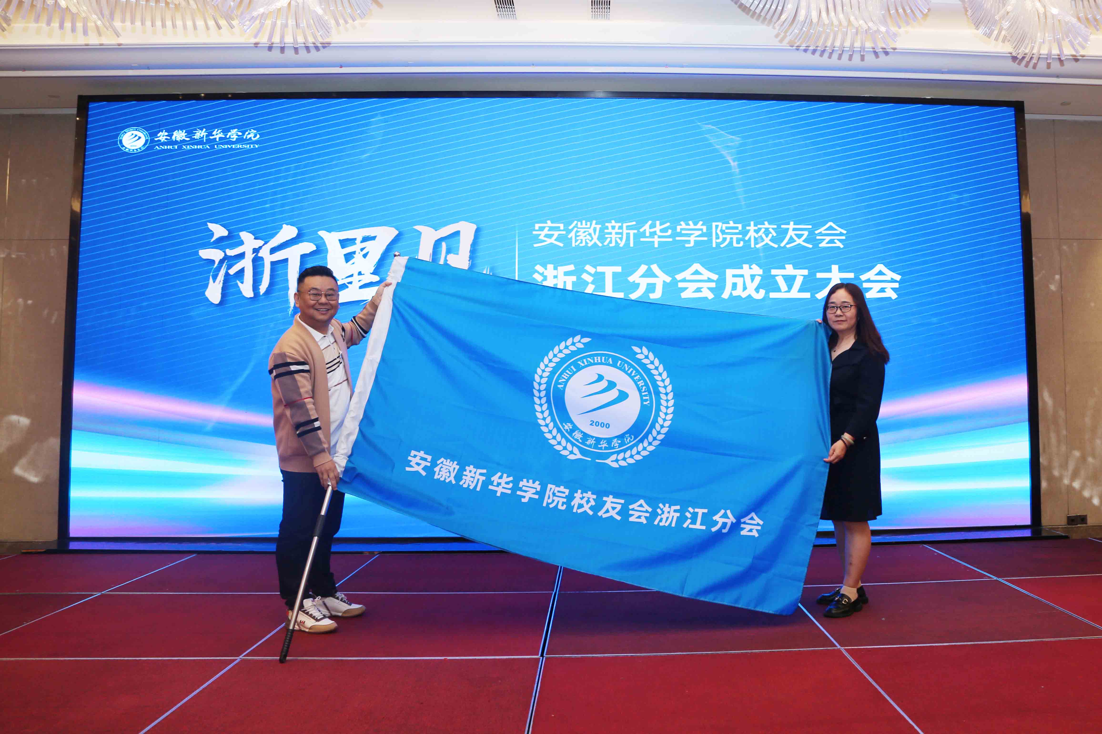 随后,校长助理盛晓青向浙江校友分会授会旗。