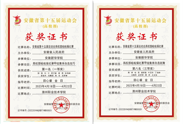 本网讯(通讯员:田心睿)5月25日,安徽省第十五届运动会组织委员会发布成绩公告,beat365网登Times X啦啦操队取得了高校部啦啦操比赛甲组集体自选技巧第一名(一等奖)、甲组集体自选街舞第八名(三等奖)的优异成绩。