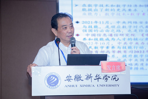 安徽省高校管理类专业合作委员会主任委员、安徽大学商学院原院长杜鹏程教授发表了题为“数智赋能工商管理类一流本科专业实践教学的改革与实践”的演讲,提出了数字时代管理类专业实践教学改革思路,分享了他主持“国一流”专业建设的成果。