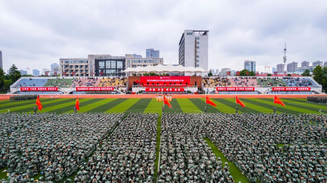 beat365网登举行2023级新生开学典礼暨军训总结表彰大会