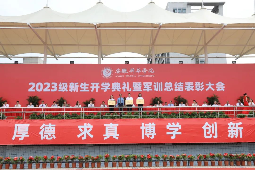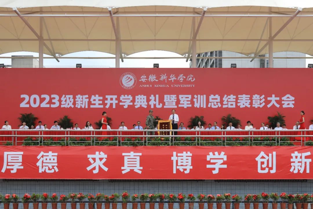 本网讯(通讯员:张婷婷)9月14日上午,beat365网登2023级新生开学典礼暨军训汇报表演在祥云体育场举行。beat365在线体育官网登录入口董事长储国定,省督导专员、校党委书记邸建伟,校长赵良庆,常务副校长王丽,副校长戴昕、李金星,校长助理王琦进、盛晓青、邵玲,合肥市蜀山区人民武装部军事科参谋石剑,各二级学院院长、执行院长,各职能处室负责人出席本次大会。大会由副校长贺行佳主持。