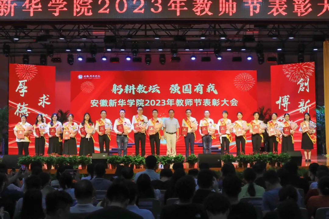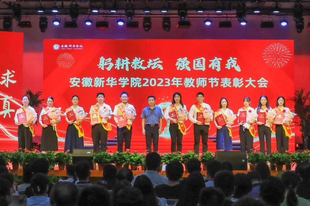 第二篇章表彰了校级“最美辅导员”、2022年度安徽省“最美高校辅导员”、2023年度省级“心理干预先进个人”“服务之星”“华园新星”、校级“师德先进个人”、校级“先进教育工作者”、校级“教书育人楷模”、校级“科研标兵”。学生代表为获奖教师送上鲜花,校领导为获奖老师颁奖,送上节日的祝福。