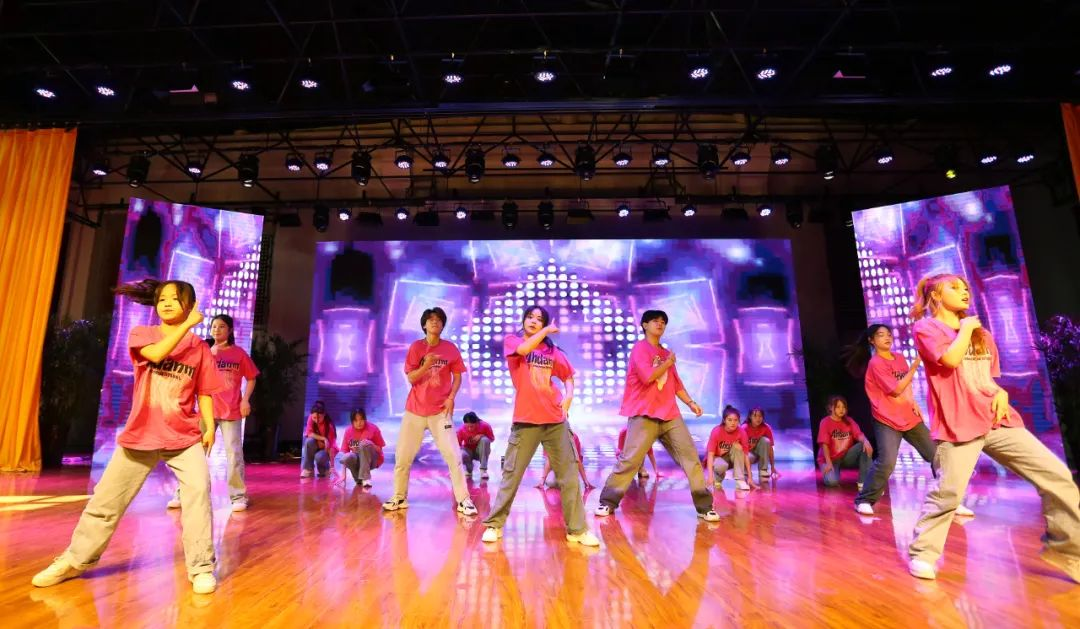 随后,金日老师和同学们一起带来了街舞表演《热烈》,整齐有力的动作,充满朝气的面孔,富有节奏的律动,展现出了属于新华园师生的青春力量。