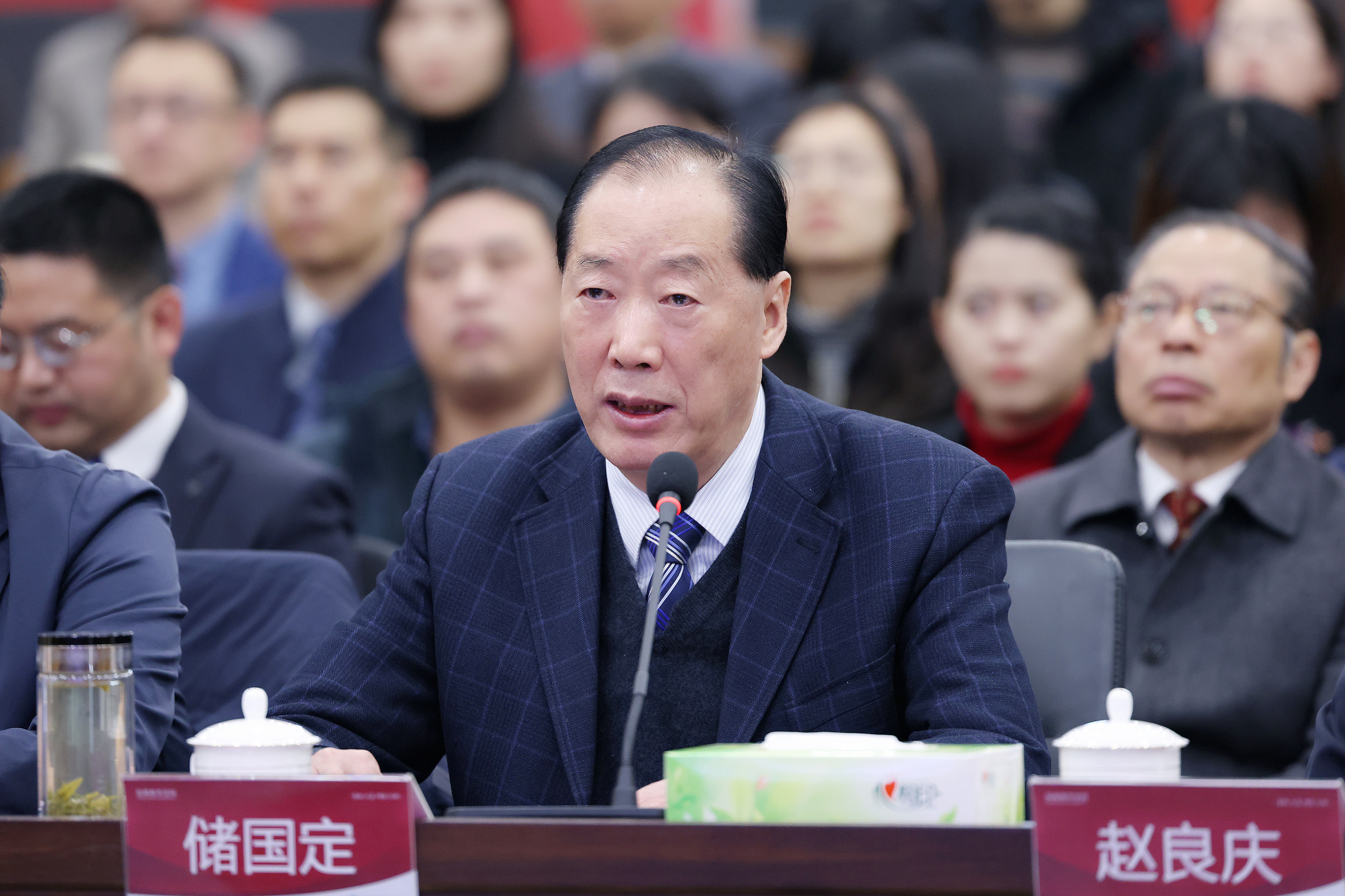 会议第一阶段,学校董事长储国定首先代表学校致辞和郑重承诺。他表示,自教育部启动新一轮审核评估工作以来,学校高度重视评估工作,立即成立评建工作领导组,将“高质量完成审核评估”列为年度重点任务,紧紧围绕“一根本,两突出,三强化,五个度”的评估要旨,全面落实“学生中心、产出导向、持续改进”的重要理念,全力开展评建工作。他强调,学校作为安徽省第一所接受新一轮审核评估的民办高校,全校上下将严格按照审核评估要求,以高度的责任心和强烈的使命感认真做好各项评建工作,虚心接受专家们的指导;密切配合专家组工作,确保专家线上线下评估工作顺利开展;坚决抓好反馈问题的整改落实,真正实现“以评促建、以评促改、以评促管、以评促强”。