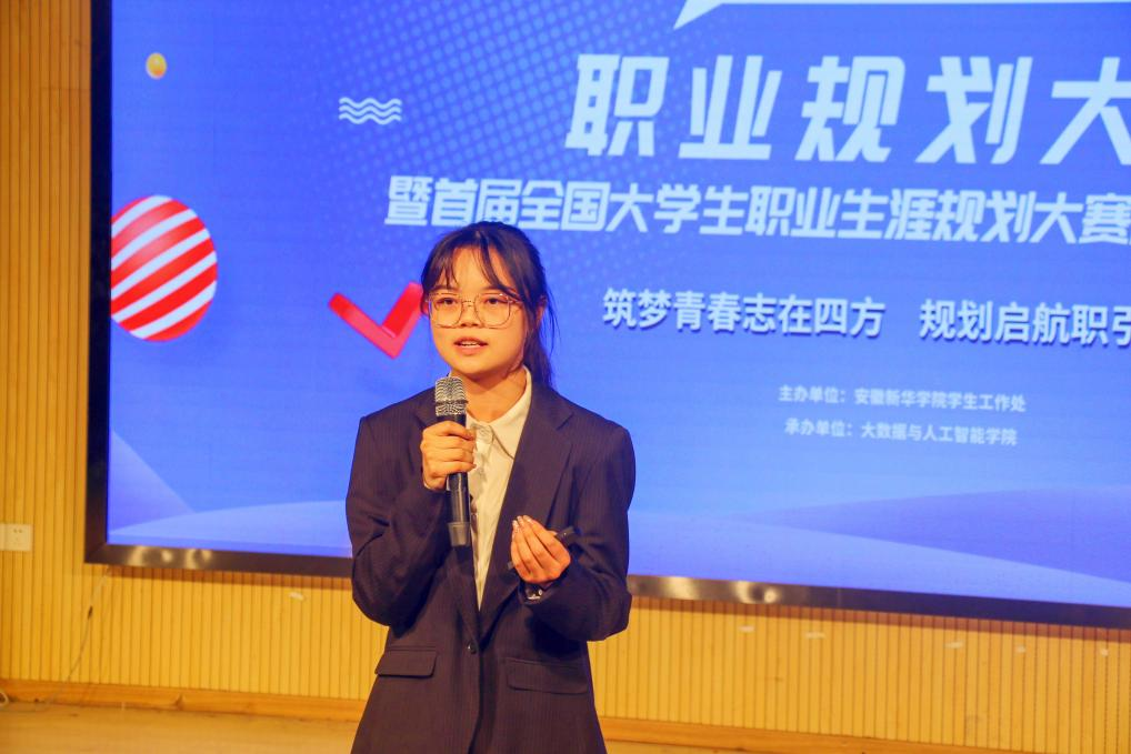 郝心远对大赛进行点评。他高度赞扬了选手的表现,他们体现了新华学子积极向上的精神风貌。同时,他结合首届全国大学生职业规划大赛的评选要求,对参赛选手们的职业规划和现场表现进行了深度剖析,勉励同学们以此次大赛为契机,不断磨练自己,不断提高职业规划能力与水平。