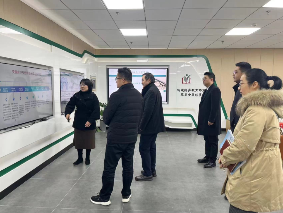 座谈会后,考察组一行参观了安徽省继续教育网络园区、安徽省终身教育学分银行展厅,观看了网络园区十年发展成果宣传片。