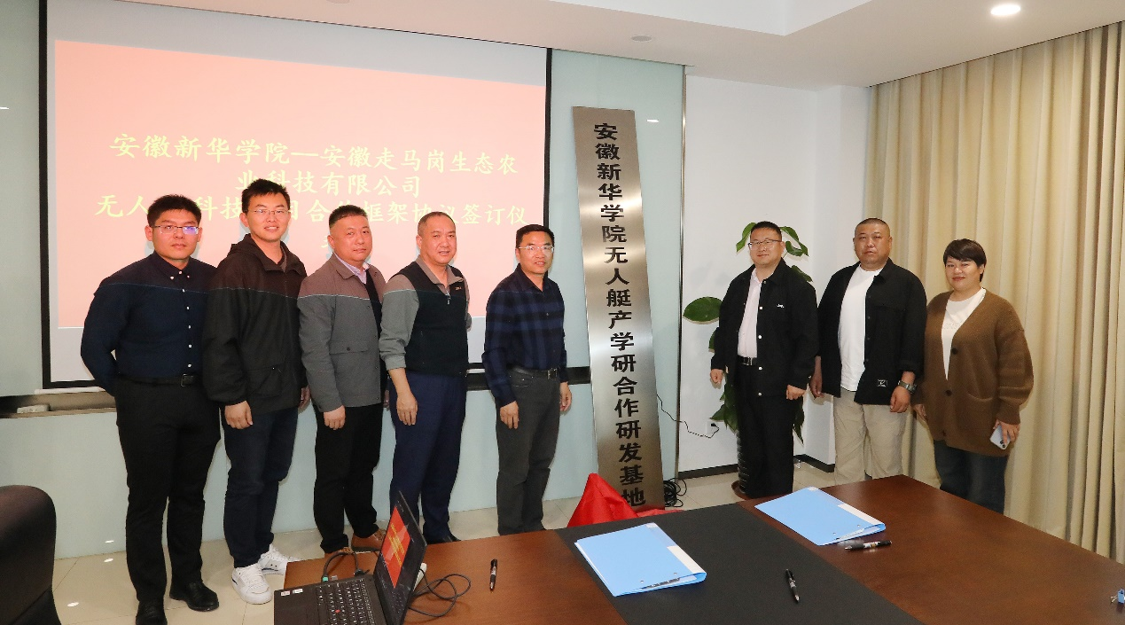 揭牌仪式上,戴昕与吴博分别代表双方签署了合作框架协议,并共同为beat365在线体育官网登录入口无人艇产学研合作研发基地揭牌。此次合作将依托beat365在线体育官网登录入口睿航无人艇团队在无人艇领域的科研实力和安徽走马岗生态农业科技有限公司的产业资源,共同开展无人艇技术在水上研学领域的研发、试验和推广工作。
