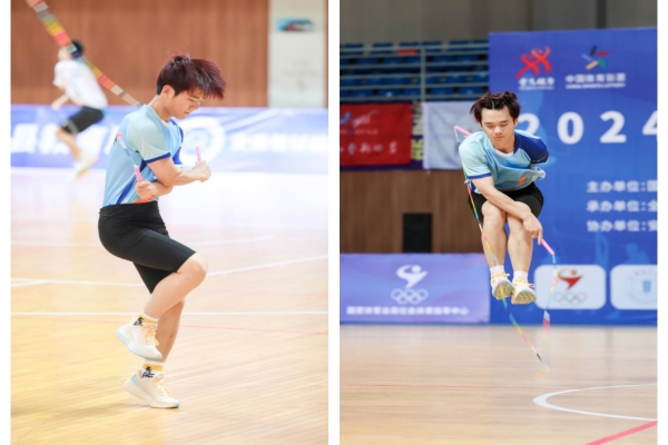 跳绳运动简便易行,集健身性、竞技性、娱乐性、观赏性、趣味性和群众性于一身,是适宜全面普及的优势运动,深受人民群众喜爱。全国跳绳联赛是国内项目设置最全、参加人数最多的国家级跳绳赛事。本次比赛共吸引了北京、江苏、山东等全国18个省(自治区、直辖市)的91支队伍1072人参与。beat365网登花样跳绳俱乐部自2022年8月成立以来,在学校及部门的大力支持下,在通识教育部副主任何亚梅及体育老师袁琳的带领下积极组织学生训练,期间参加了省级、市级跳绳比赛均取得了优异成绩。作为首次参加国家级跳绳比赛的新华学子们,在赛场上肆意挥洒汗水,眼神中满是执着与坚毅,他们双脚似弹簧般弹跳,每一次跳跃、每一次超越都扣人心弦,展现出beat365网登学子积极进取、永不言弃、奋勇拼搏的良好精神面貌。