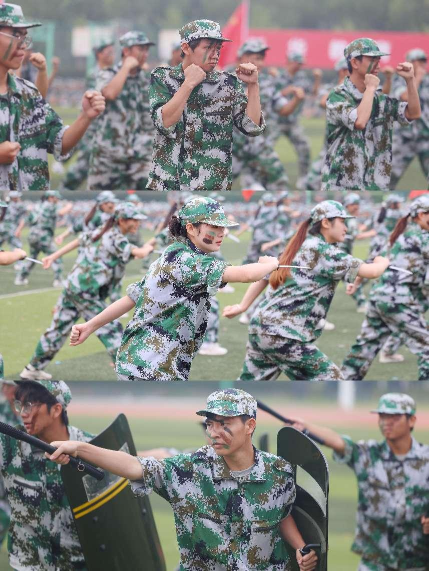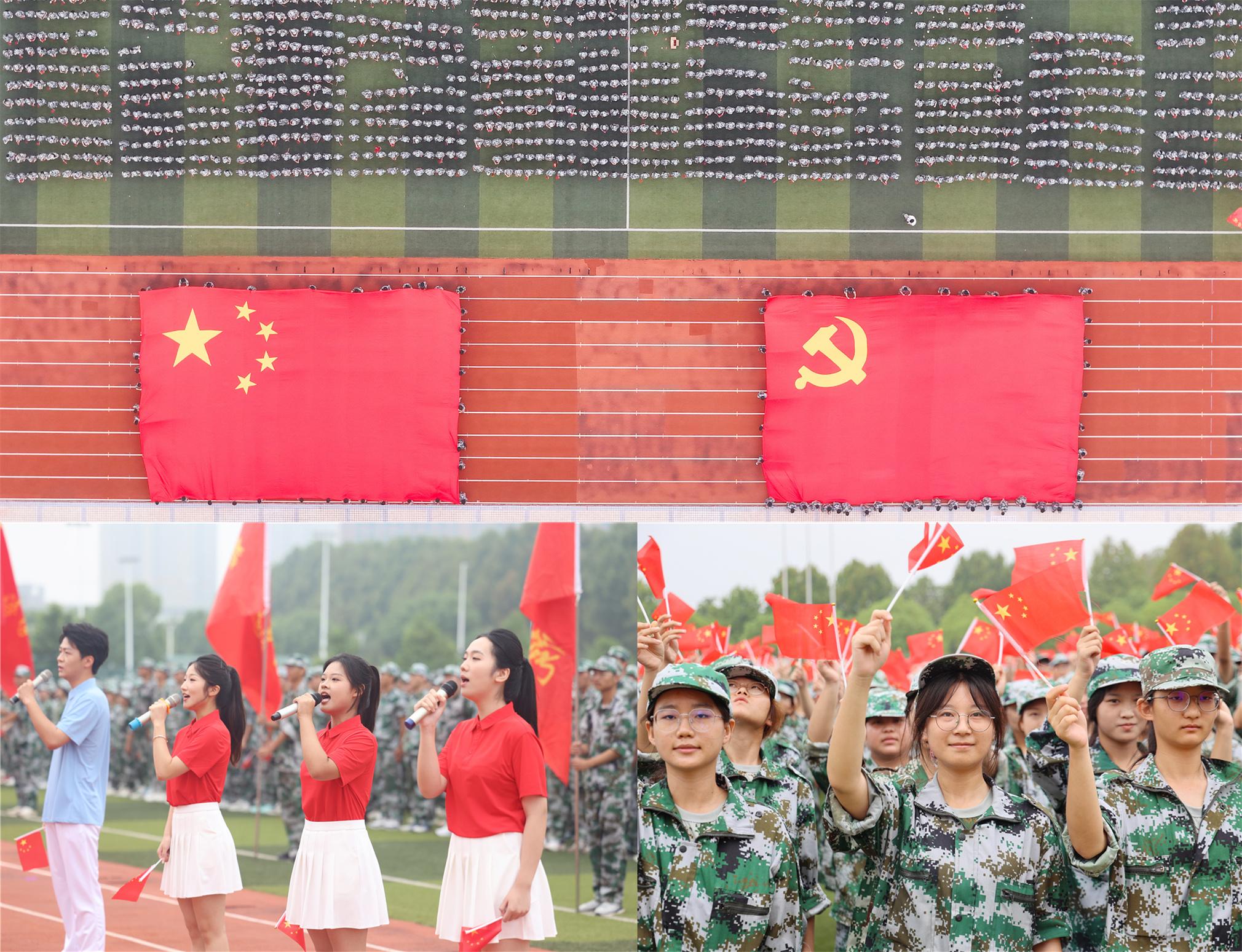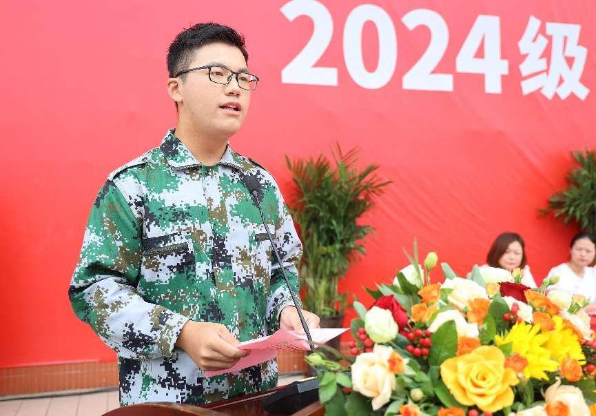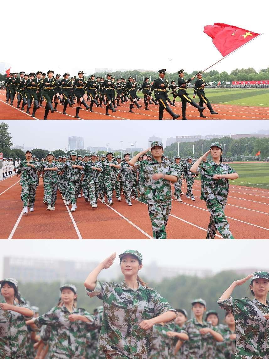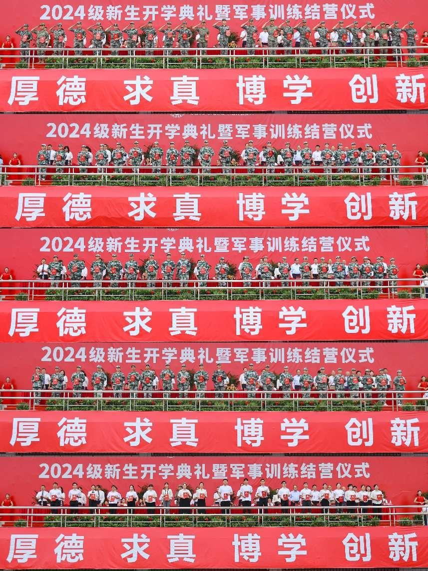 雄壮的国歌声响起,五星红旗在体育场上空高高飘扬,2024级新生开学典礼暨军事训练结营仪式庄严拉开帷幕。