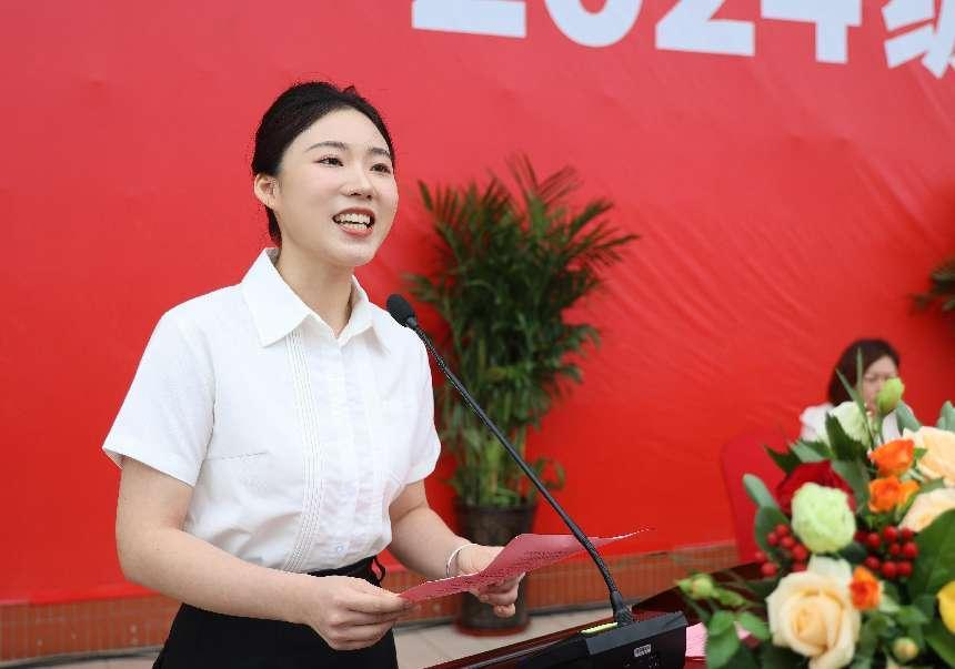 老生代表文化与传媒学院2021级小学教育专业孙云芳同学上台发言。