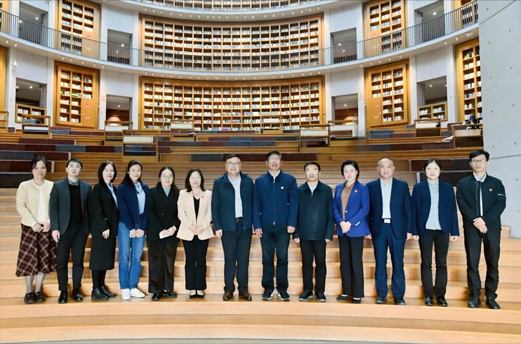 10月23日,调研组一行在浙江树人学院副校长叶时平等的陪同下,参观了贺田图书馆、树兰国际医学院和交叉科学研究院。