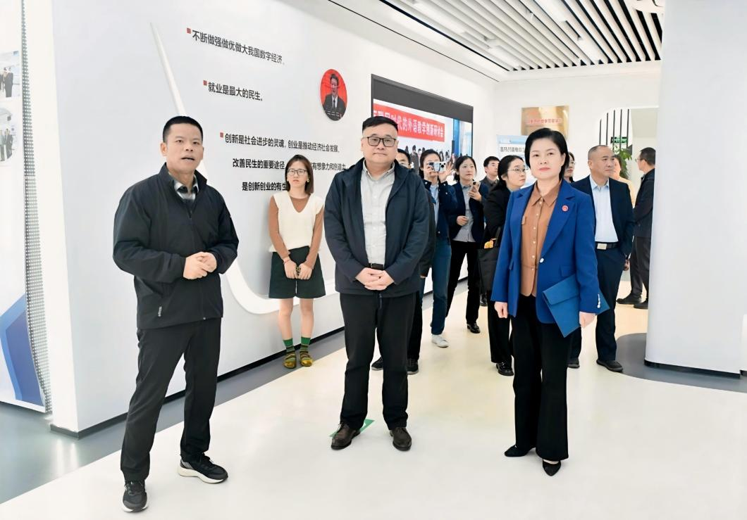 10月24日,调研组一行在浙江越秀外国语学院常务副校长魏小琳等的陪同下,先后参观了工信部“校企协同就业创业创新示范实践基地”、校图书馆以及耕读传家馆。