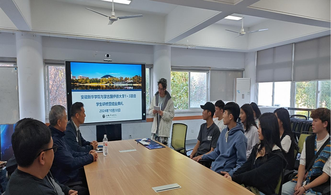 本网讯(通讯员:凌青霞)10月30日下午,蒙古国伊德大学学生研修营结业典礼在教7-211会议室顺利举行。蒙古国伊德大学代表达西老师、国际交流合作处/国际教育学院全体教职工,研修营全体学生、在校留学生代表出席了此次结业典礼。典礼由国际教育学院副院长(主持)程宜主持。