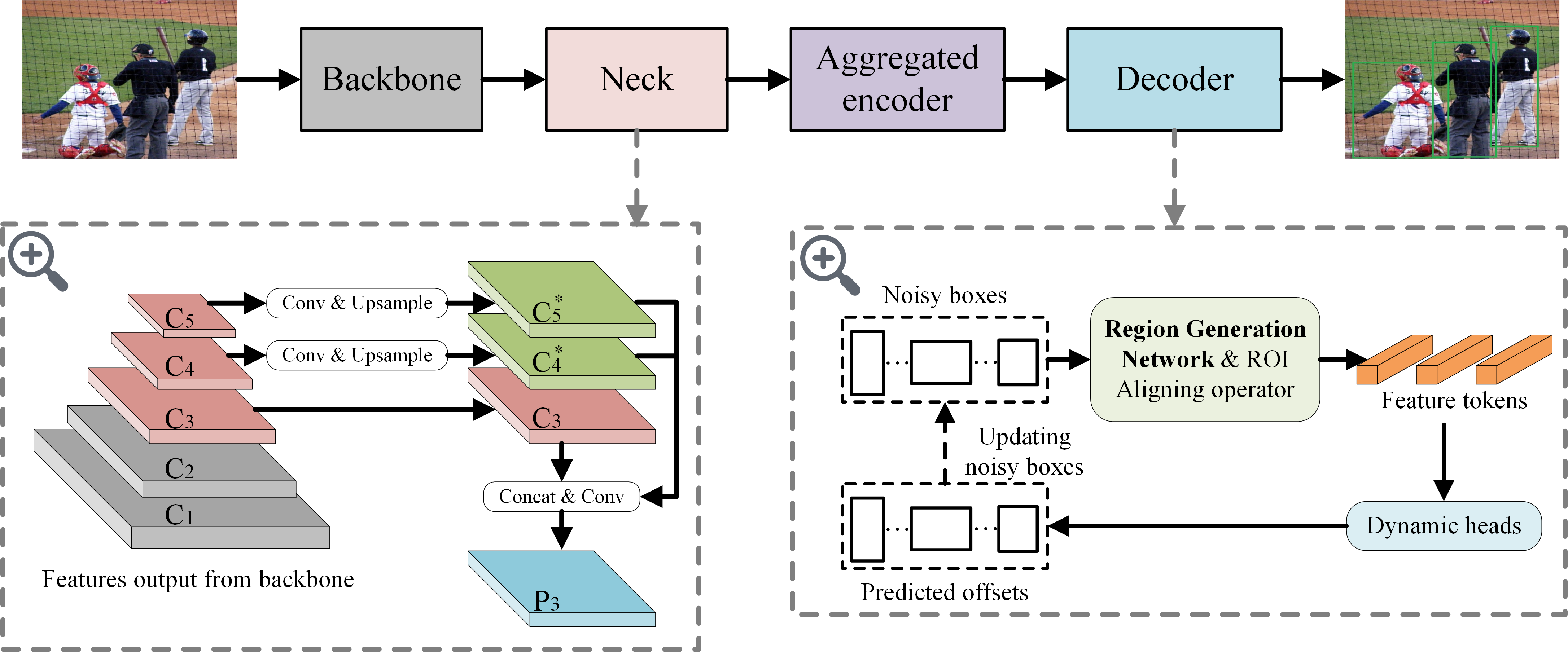 论文聚焦于稀疏目标检测中的高斯噪声框去噪难题,针对噪声框在特征金字塔中的低效匹配以及全局特征捕捉的挑战,团队创造性地提出了Prior Sparse R-CNN目标检测框架。该框架巧妙设计了一种聚合编码器,通过扩展残差块和特征聚合策略,有效解决了目标尺度变化带来的检测难题,并在单特征图下实现了检测效率的显著提升。