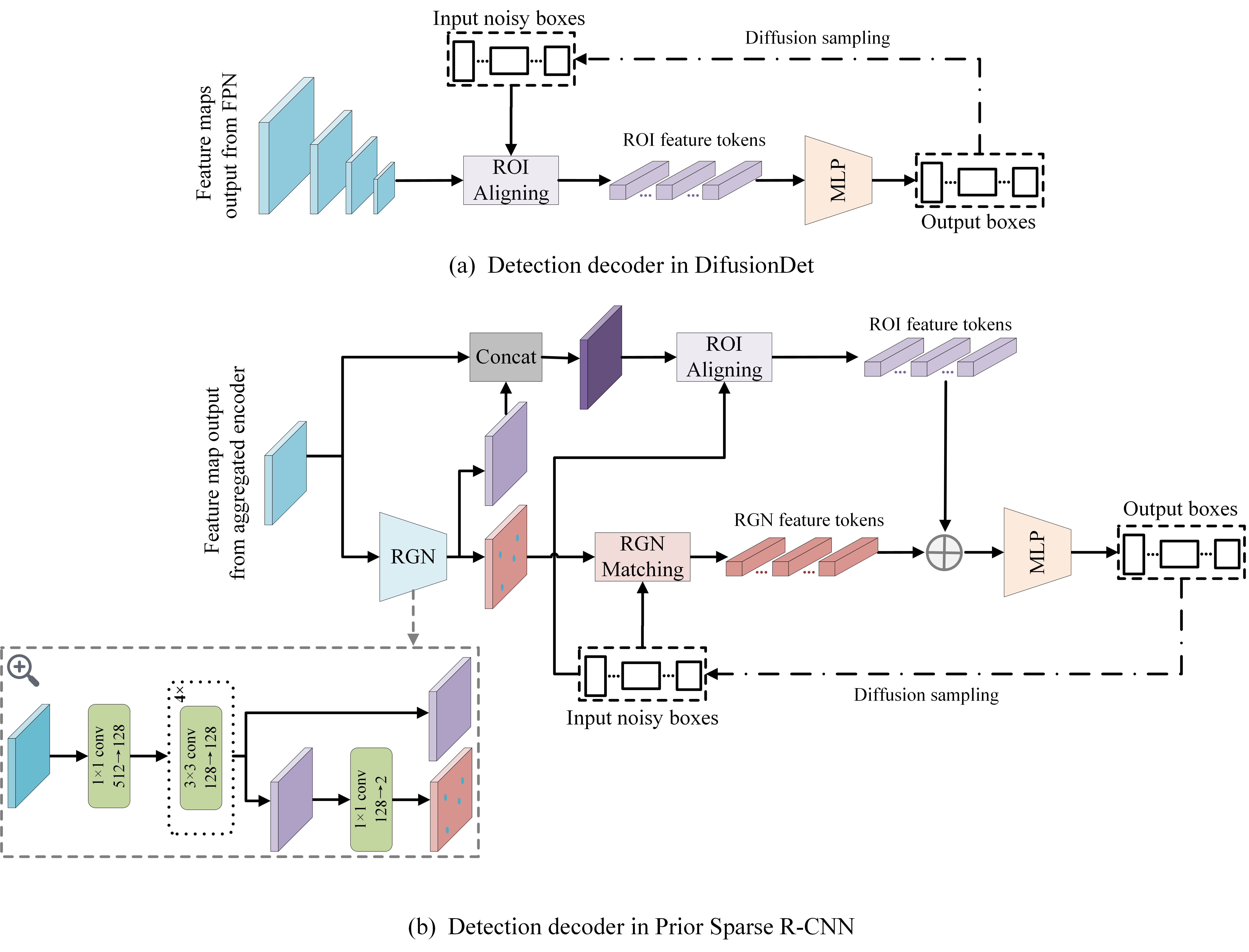 尤为值得一提的是,Prior Sparse R-CNN引入了区域生成网络(Region Generation Network, RGN),通过额外的训练过程生成特征图的先验预测,这些先验信息与噪声框进行精准匹配,显著提升了训练的精确度。与现有方法相比,Prior Sparse R-CNN的平均精度(AP)提高了1.5个百分点,同时训练周期缩短至原来的3/5,展现了良好的性能提升与效率优化。