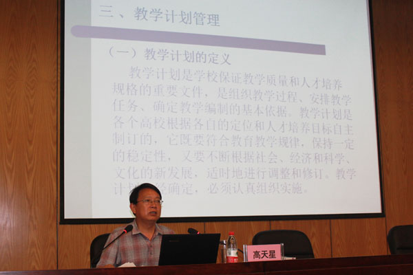 高天星教授以自身经验和阅历,结合了铜陵学院的评建工作,阐述了教学管理人员的工作职责。他指出,教学管理工作是高校工作的重中之重,各教学管理人员应认真梳理工作职责,明确流程,提高工作效率,全面提高业务能力。他还强调,评建工作是对高校教学管理工作的检验与磨砺,各单位应以评建为契机,开展教学管理创新,全面提升教学管理水平。