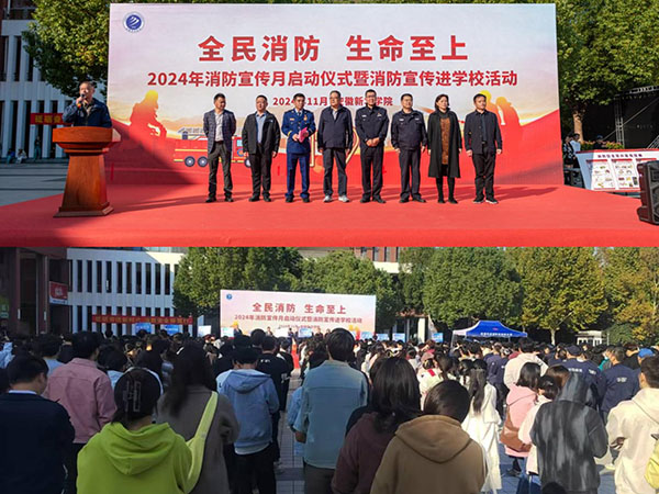 11月6日,beat365网登举行了2024年“119”消防宣传月启动仪式。高新消防大队参谋朱智、高新派出所教导员居巍、副校长李金星出席仪式。学校相关处室负责人、各二级学院师生代表、后勤服务人员等800余人参加了启动仪式。通过开展消防宣传月活动,在全校营造关心消防、关注消防的浓厚氛围,动员全校师生行动起来,共同营造校园消防安全环境。