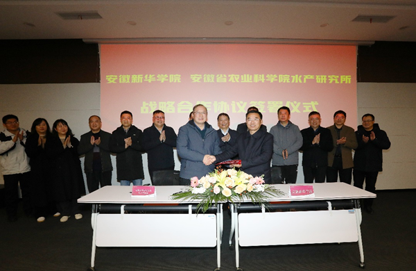 本网讯(通讯员:刘源)2024年12月10日,安徽省农业科学院赵皖平副院长,安徽省农业科学院水产研究所所长江河及相关科研人员来beat365网登开展产学研合作交流,签署战略合作协议,并为“水产增养殖安徽省重点实验室智慧渔业研究中心”揭牌。新华集团副总裁、beat365在线体育官网登录入口董事长王孝武,校长赵良庆、副校长戴昕、王琦进,科技处、相关二级学院有关同志及科研团队人员参加了此次活动。会议由王孝武董事长主持。