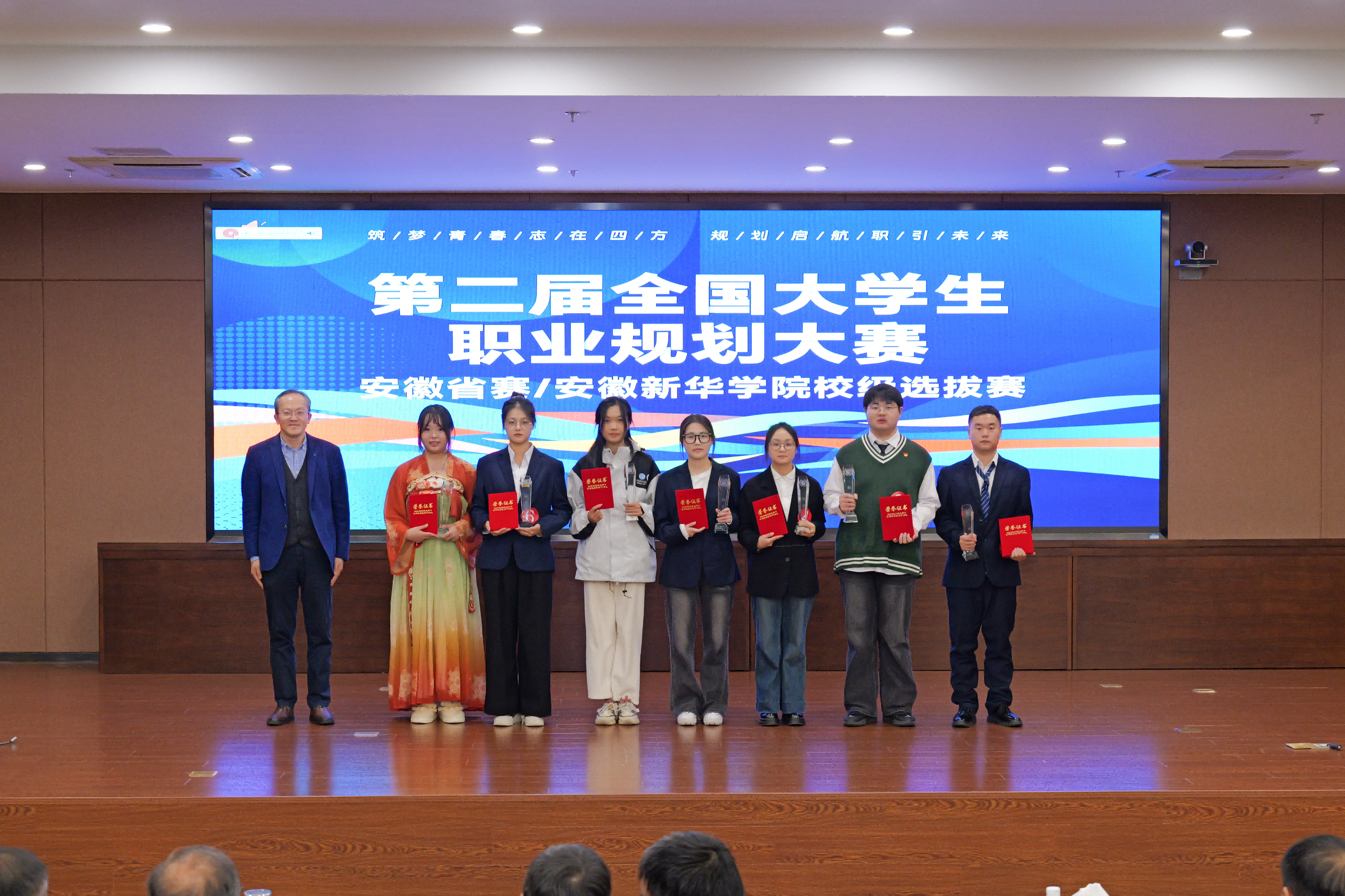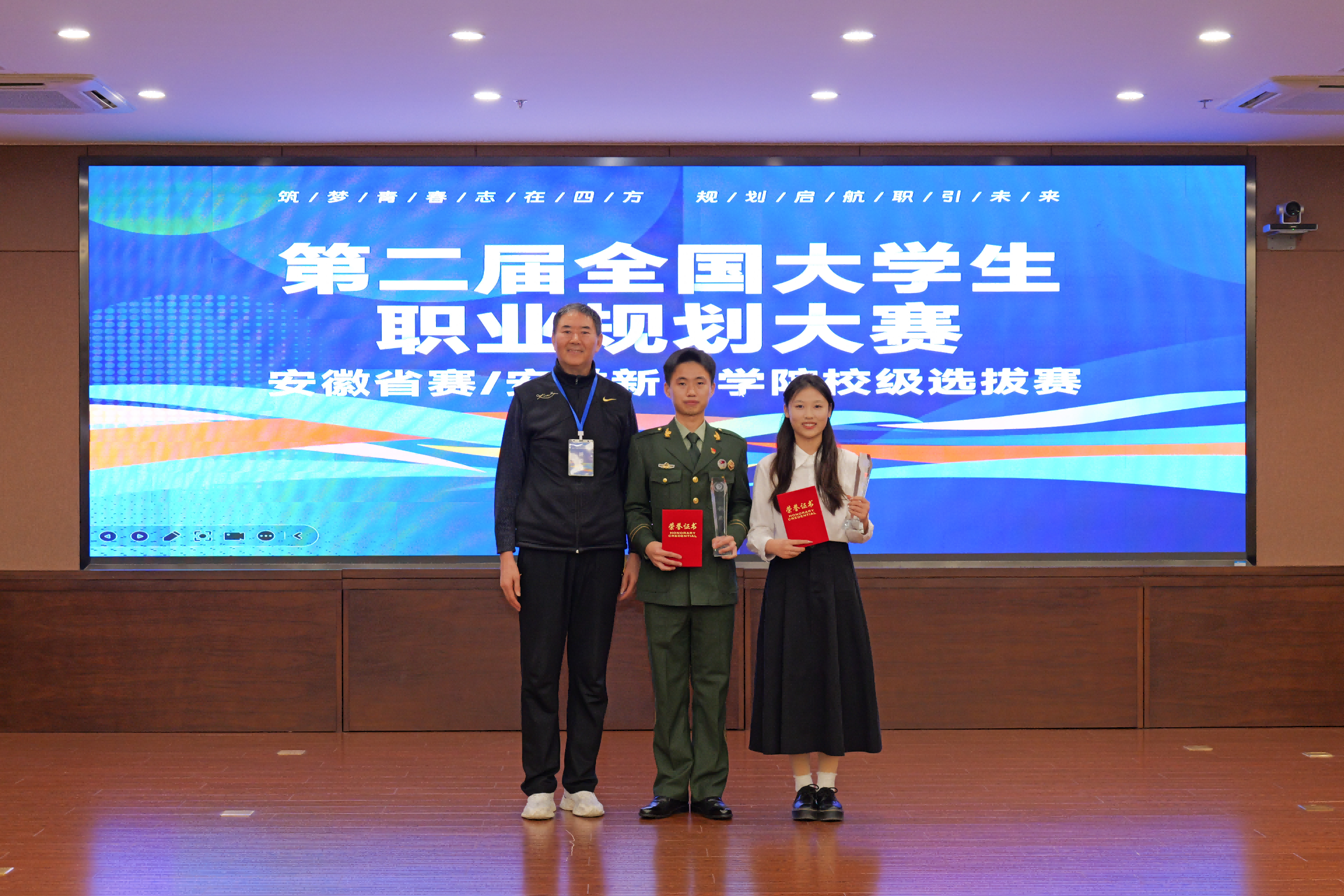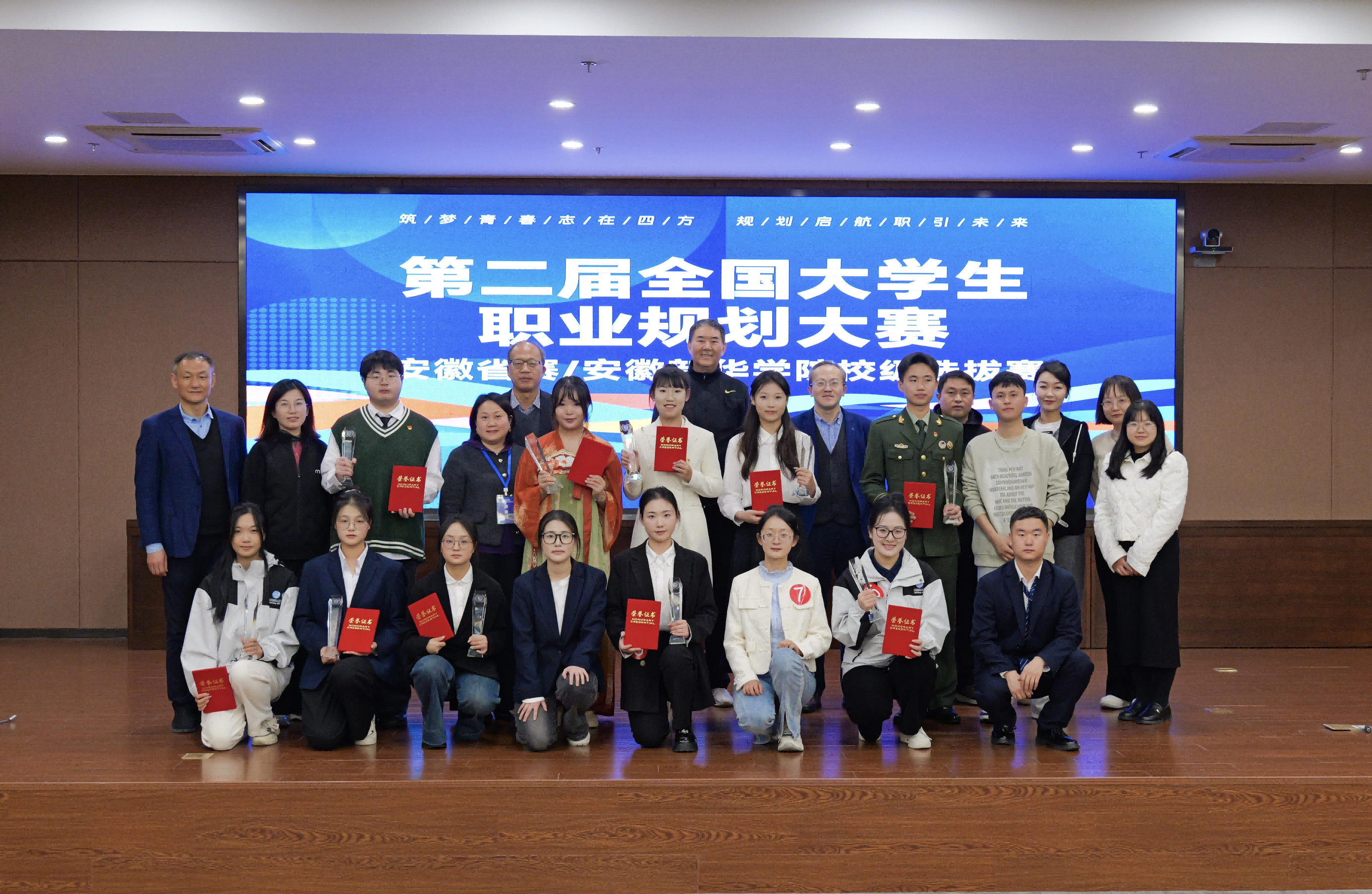 本网讯(通讯员:刘晓蓉)为深入贯彻落实党中央、国务院关于高校毕业生就业工作的决策部署,落实《教育部关于举办第二届全国大学生职业规划大赛的通知》有关精神,加强学校生涯教育和就业指导,增强大学生职业规划意识,促进高质量充分就业。12月7日,beat365网登第十八届大学生职业规划大赛校级决赛暨第二届全国大学生职业规划大赛校内选拔赛在科研办公楼二楼多媒体厅举办。决赛邀请了中国科学技术大学、合肥工业大学、安徽建筑大学、安徽中医药大学、合肥大学等高校知名生涯规划专家以及知名企业高级管理人、人力资源负责人担任现场评审,近200名学生到场观摩学习并为选手加油。