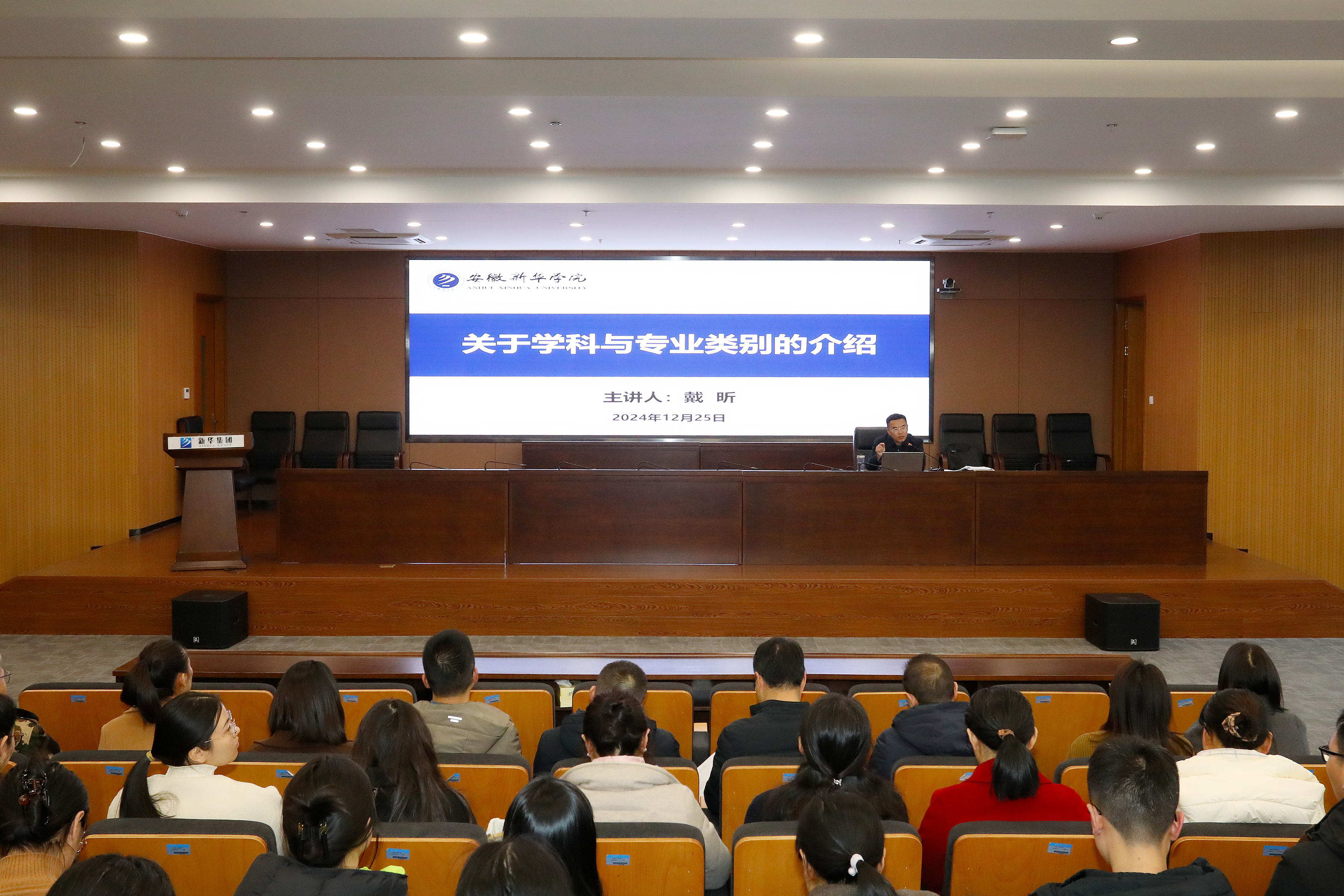本网讯(通讯员:陈璟)为全面提升学科建设和科学研究水平,推动学校高质量发展,并宣传《中华人民共和国学位法》。12月25日,beat365网登开展“关于学科与专业类别的介绍”专题讲座,主讲人为副校长戴昕。新华集团副总裁、校董事长王孝武,各二级学院(部)相关管理人员、三个学位建设点负责人及骨干教师,部分职能部门助理及以上人员参加了此次讲座。讲座由科技处处长邱国新主持。