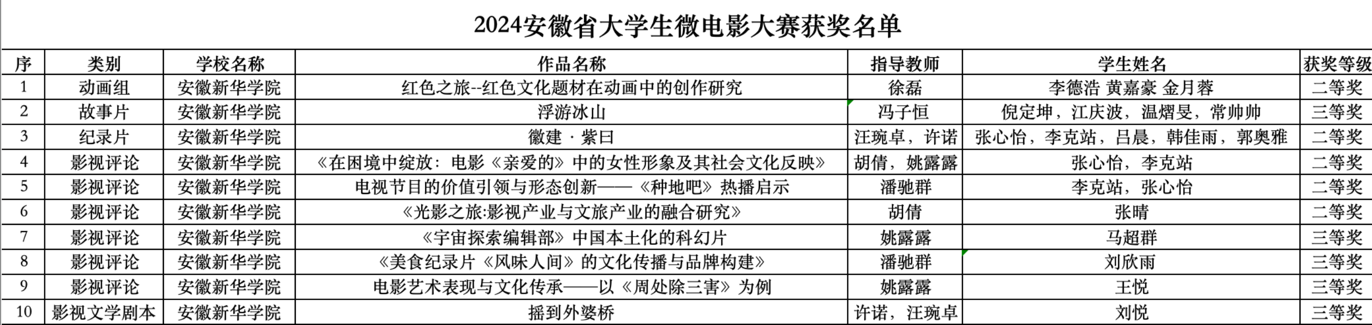 喜讯!文化与传媒学院学子在安徽省大学生微电影大赛中喜获佳绩