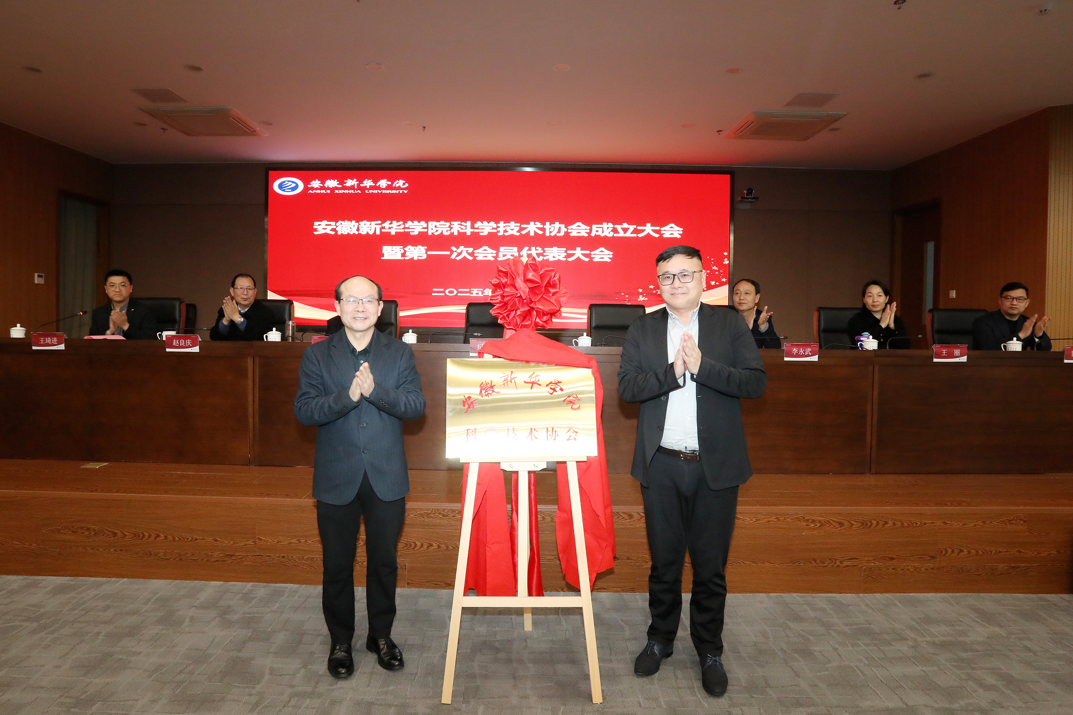 纪光水和王孝武共同为“beat365在线体育官网登录入口科学技术协会”揭牌。