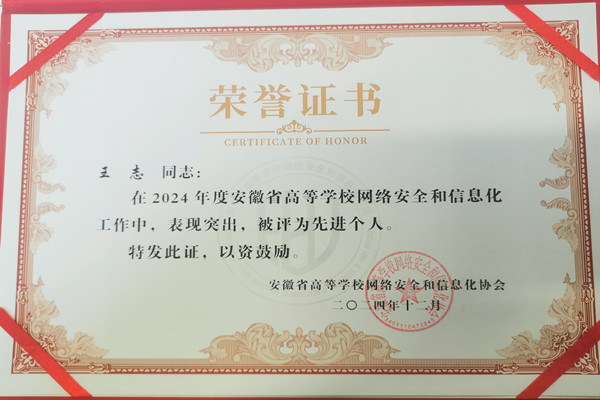 beat365网登教师荣获2024年度安徽省高校网络安全和信息化工作先进个人称号