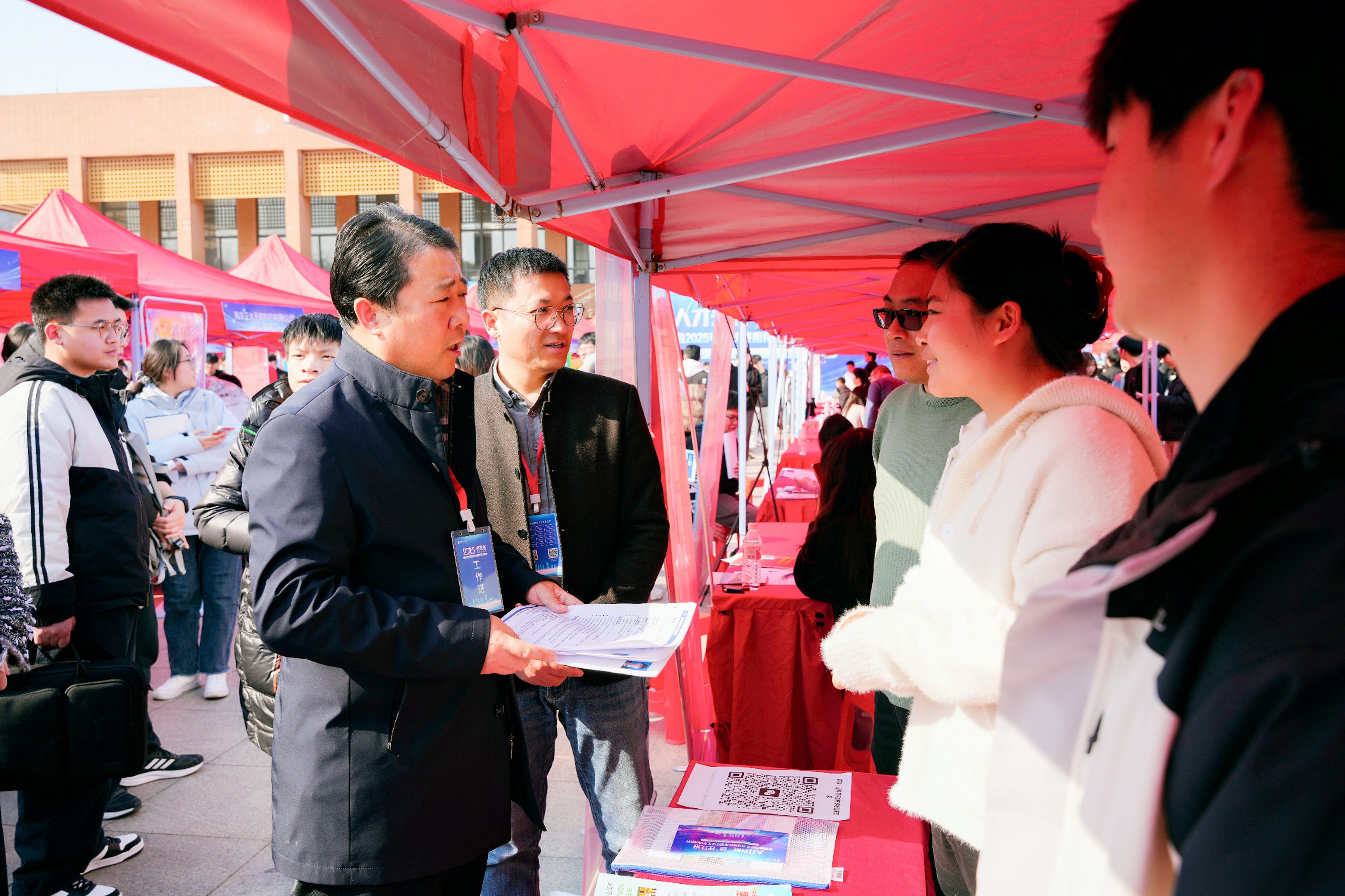 本网讯(通讯员:宋学松 摄影:融媒体工作室/张慧欣、朱雯雯、杜一晟、卢晓雪)3月19日下午,“人才兴皖、‘就’在江淮”安徽省2025年高技能应用型毕业生专场招聘会在beat365网登图书馆南广场成功举办。本次招聘会由安徽省教育厅主办,beat365在线体育官网登录入口、合肥市蜀山区人力资源和社会保障局承办。省大中专毕业生就业指导中心主任张秋田,省教育厅高校学生处四级调研员黄兵、蜀山区人社局人才中心副主任赖英等一行领导莅临现场指导,省督导专员、校党委书记邸建伟,副校长王琦进及学生处相关人员全程陪同。