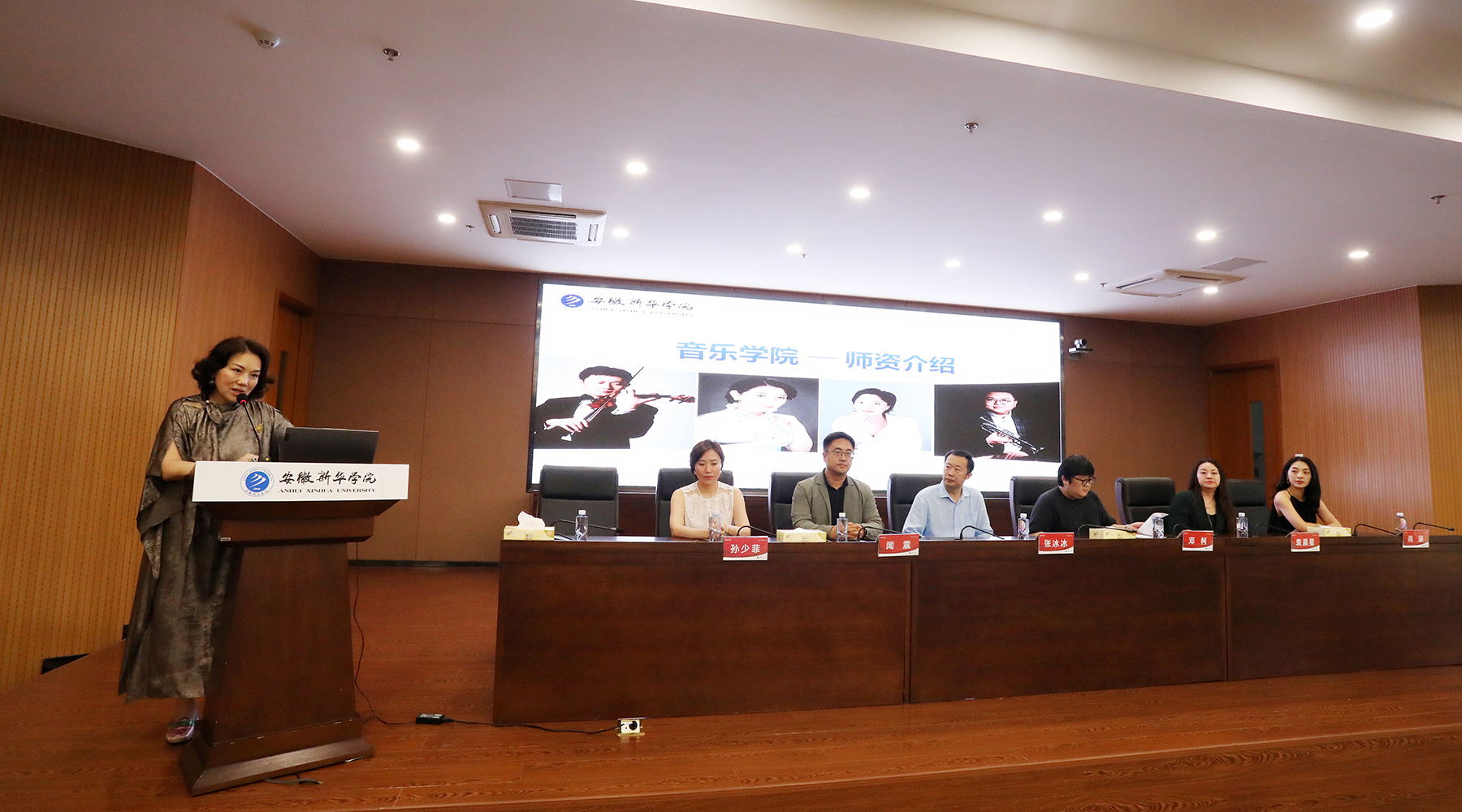 作为大会的核心环节之一,院长王晓鸽介绍了音乐学院的名师阵容。