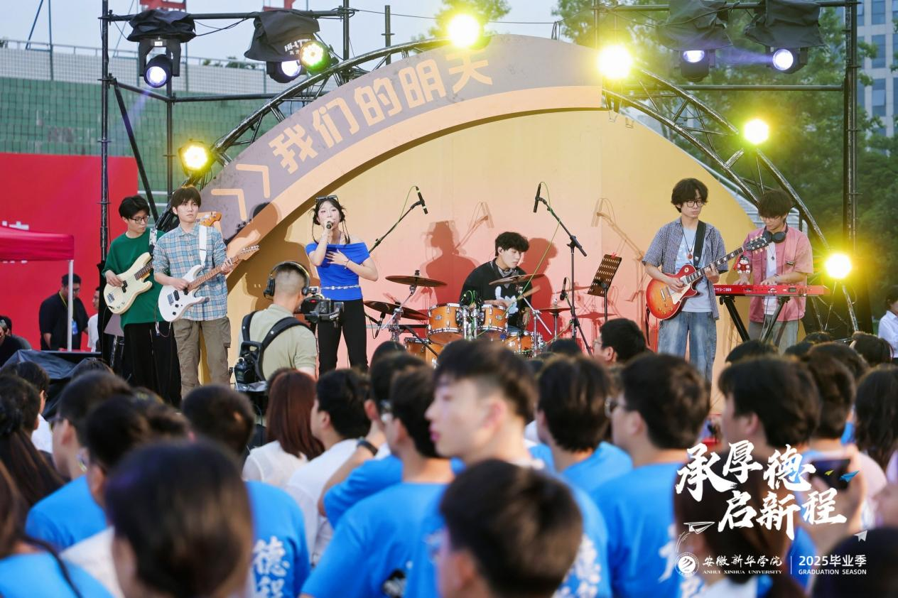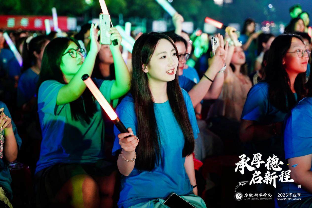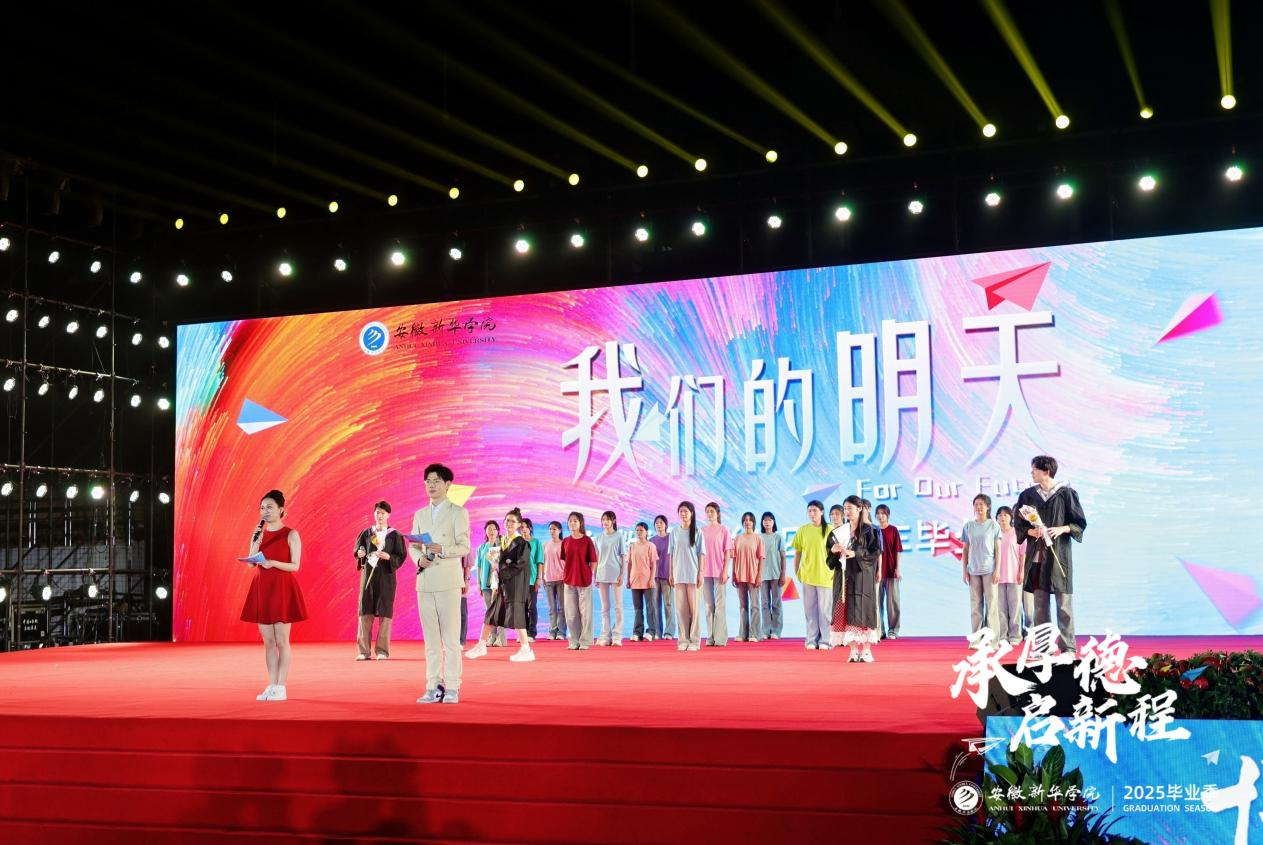 歌会尾声,全体合唱《我们的明天》将气氛推向高潮。舞台光影与夜空繁星交织,寓意毕业生如星奔赴山海,带着新华园赋予的勇气与担当,在更广阔的天地绽放光芒。这场音乐盛宴不仅是告别仪式,更是青春誓约:以热爱为帆,以奋斗为桨,奔赴下一场璀璨征程。